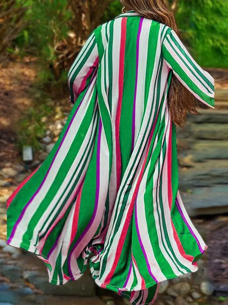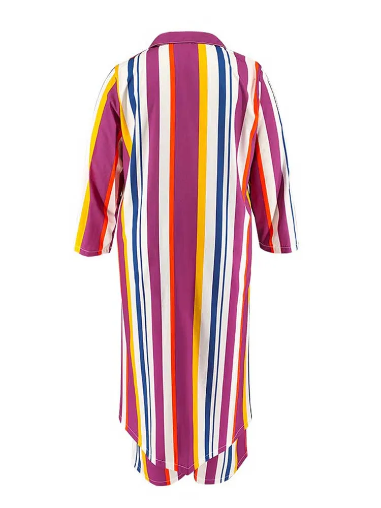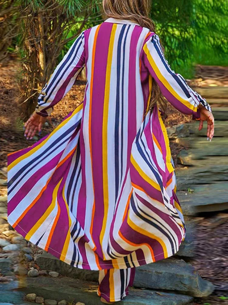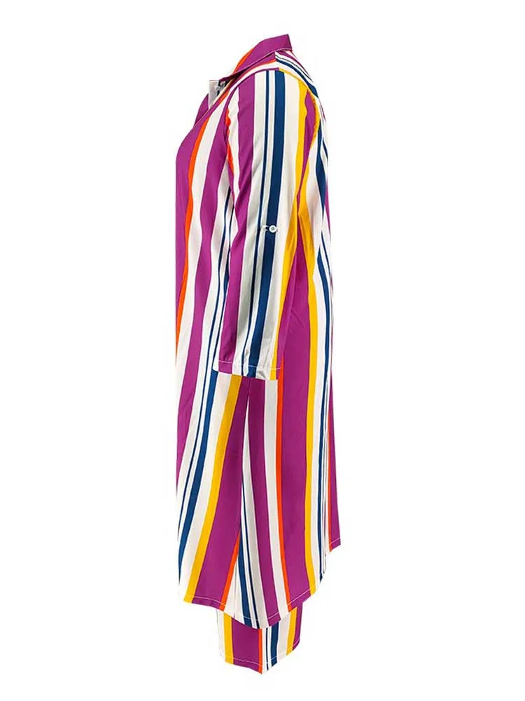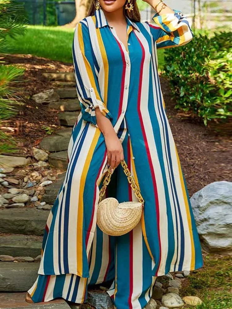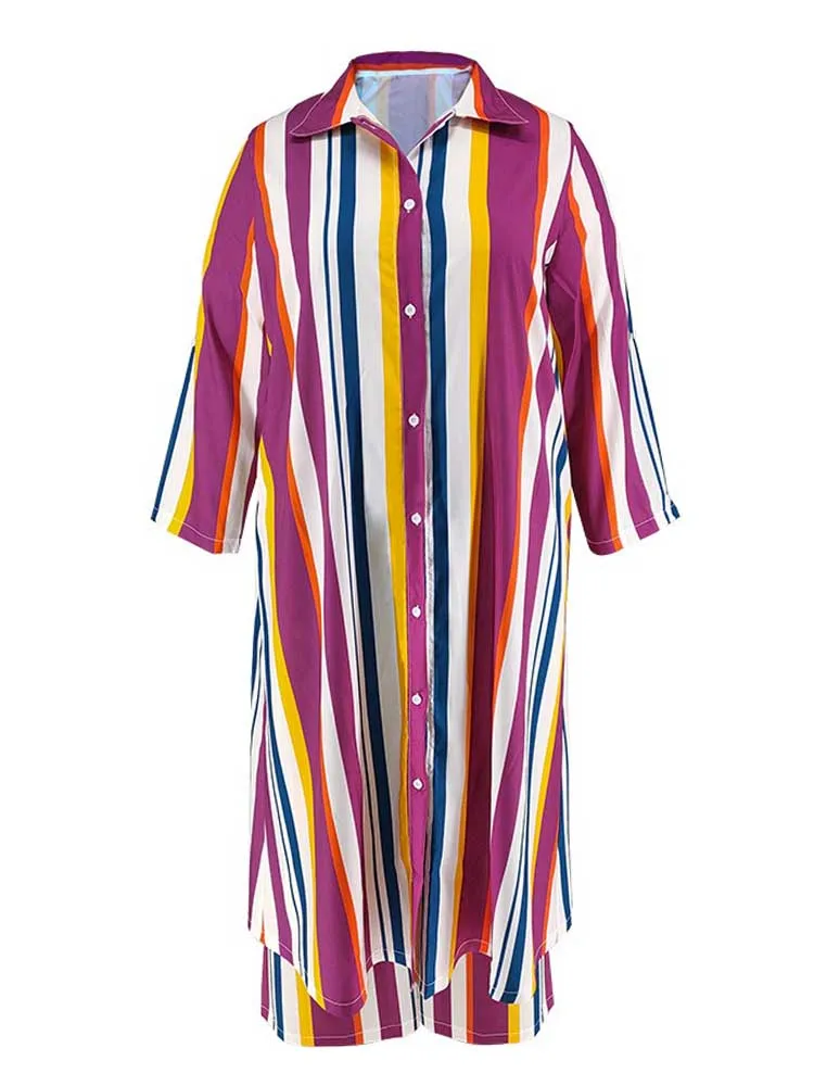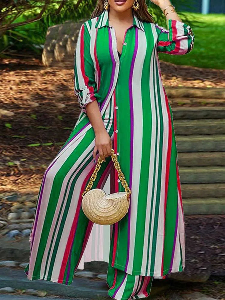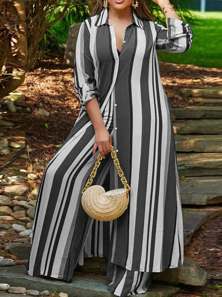 2 Piece Outfit Set Women Plus Size Matching Sets Long Shirt Top and Pants Sets Striped Casual Outfits 5xl Women Autumn Clothes