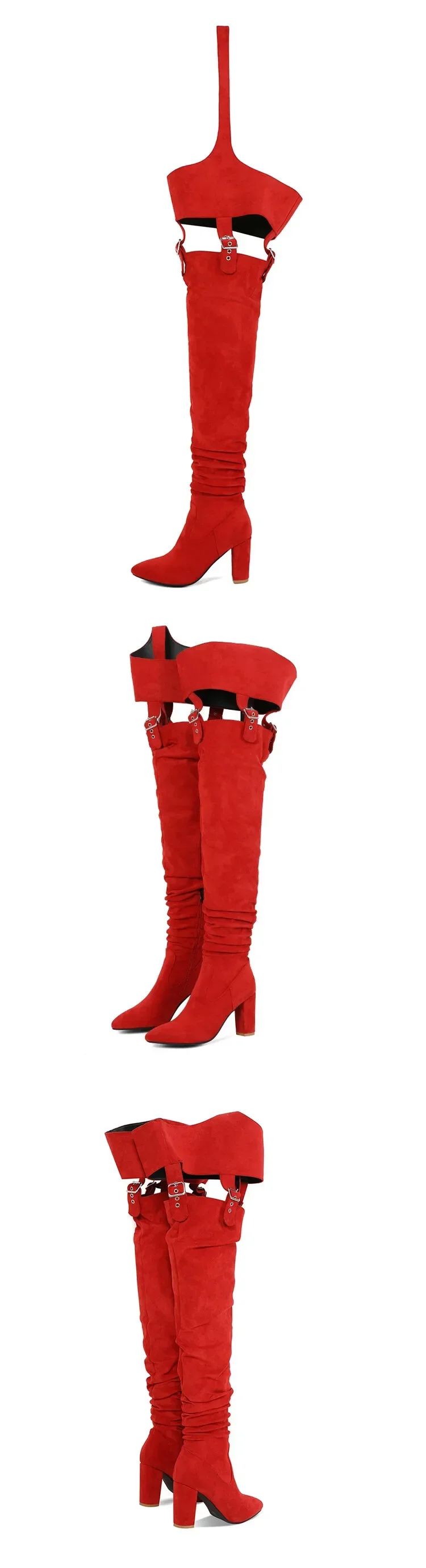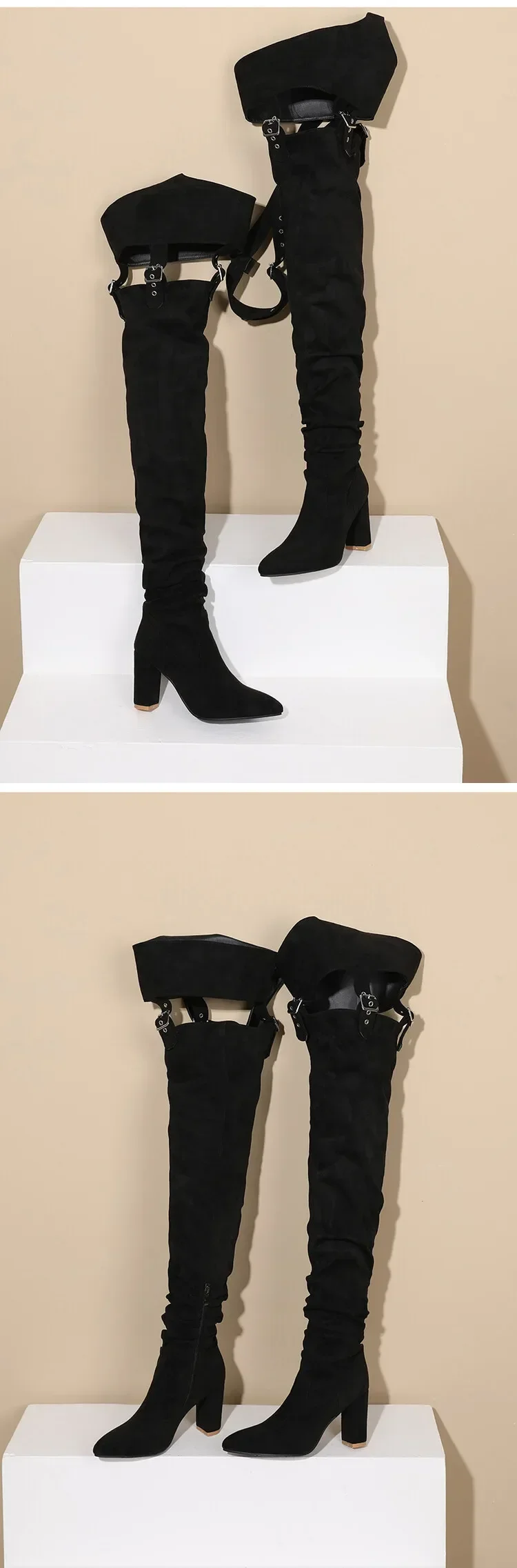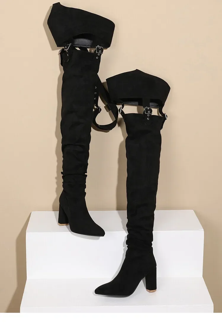 2024 New Suede High Heels Sexy Buckle Strap Thigh High Boots NightClub Stage Over-the-Knee Long Booties 8.5CM Fetish Women Shoes