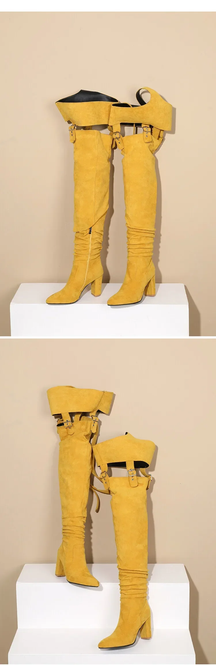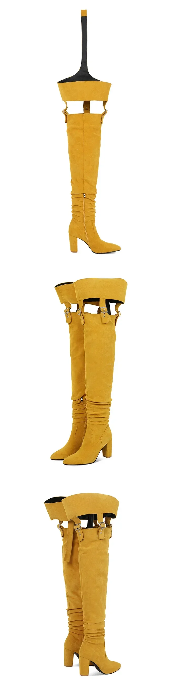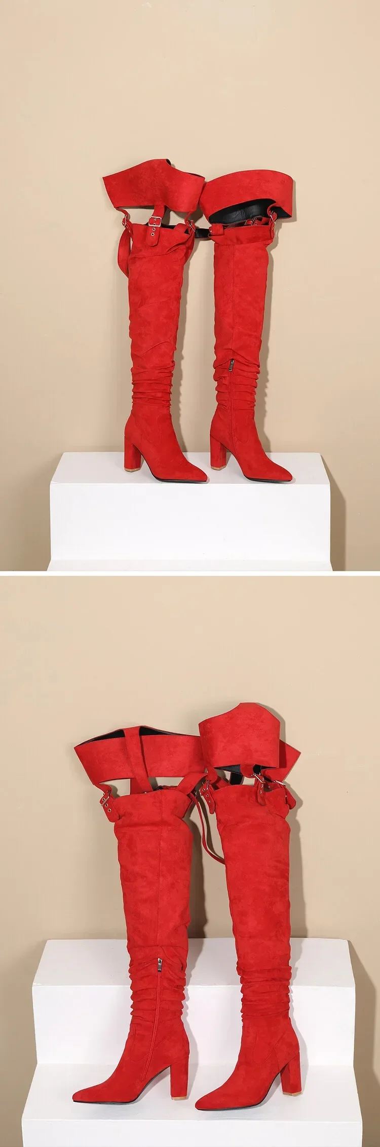 2024 New Suede High Heels Sexy Buckle Strap Thigh High Boots NightClub Stage Over-the-Knee Long Booties 8.5CM Fetish Women Shoes