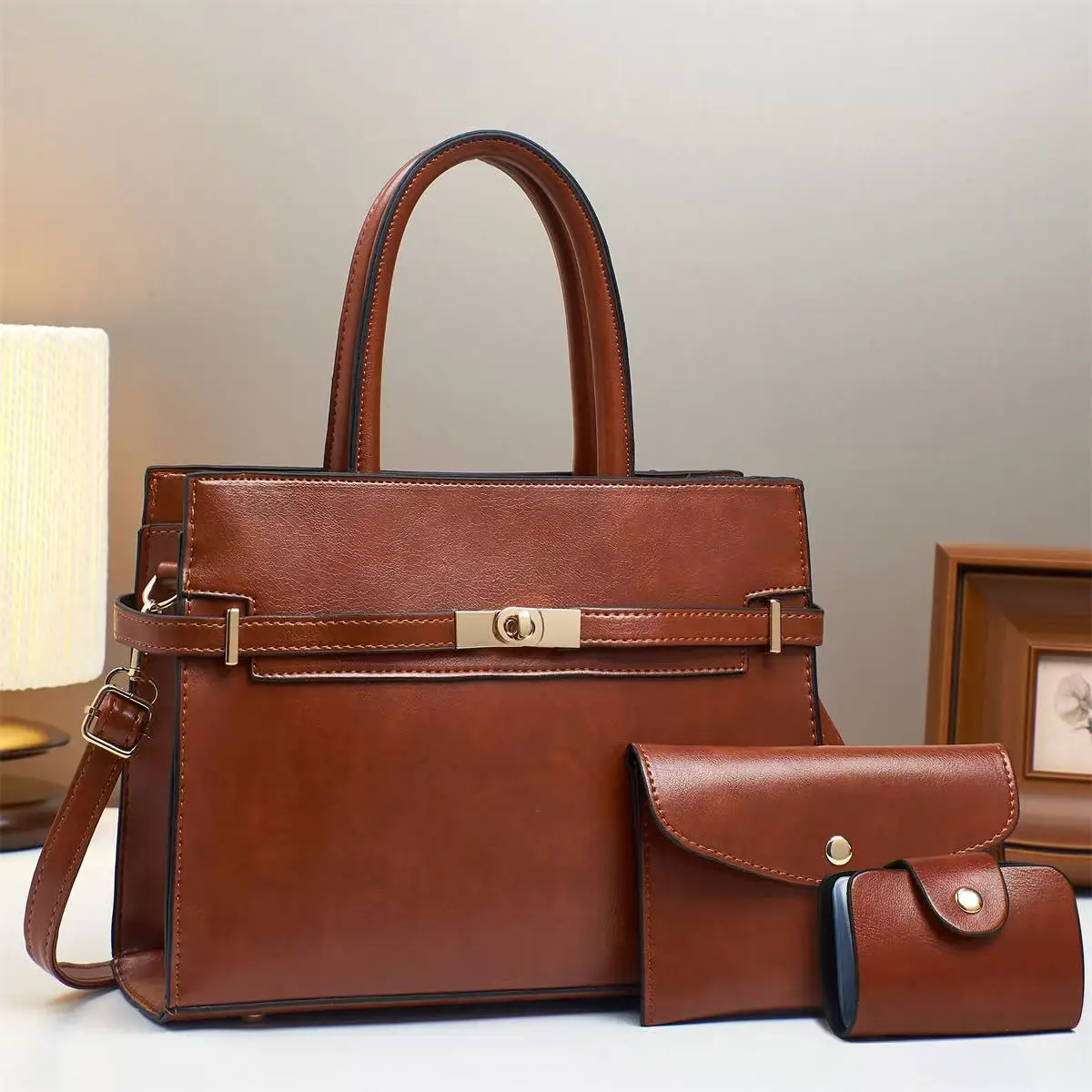 2025 Premium 3-Piece Tote Set - Luxe Structured Handbags, Minimalist Women's Office Purse Collection, Trendy Work Essentials