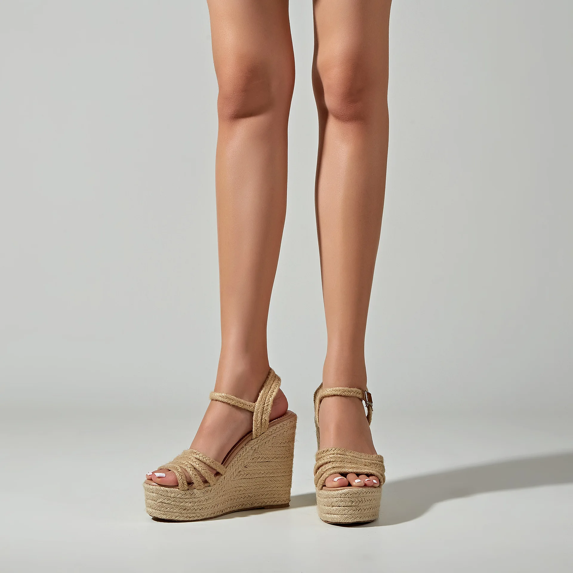 Aneikeh 2026 Platform Wedge Sandals Women's Summer Fashion Trend Narrow Band Braid Buckle Strap Gladiator Wedge Heel Shoes 36-43