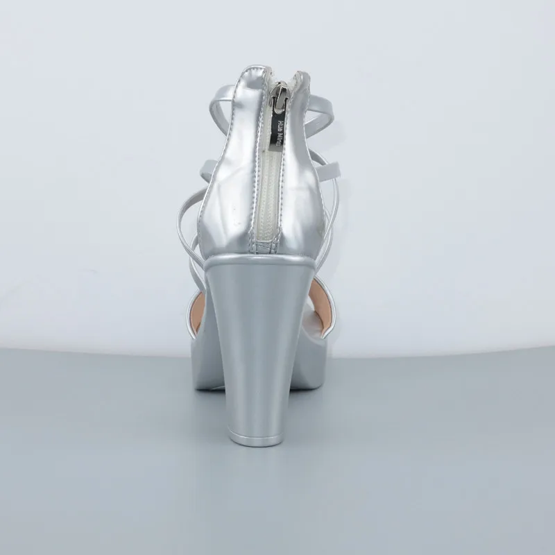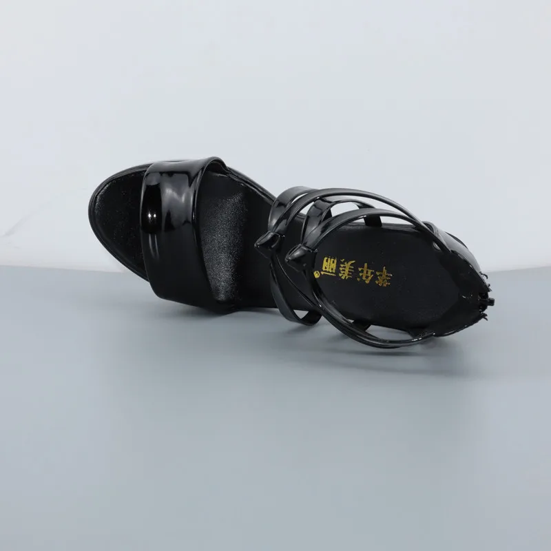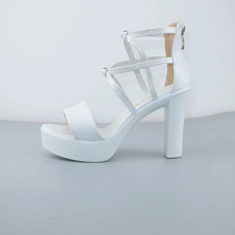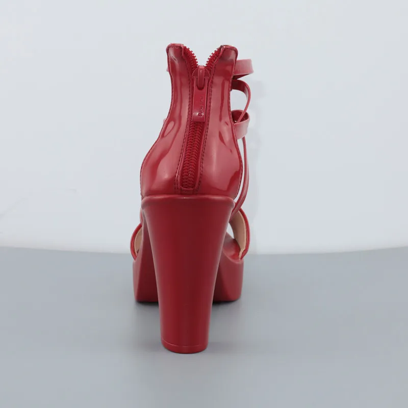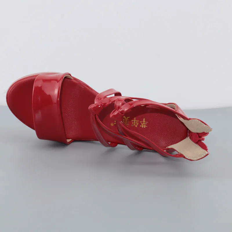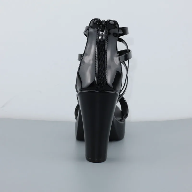 Big Size 32-43 Block Heel Platform Sandals Women Wedding Shoes 2025 Summer High Heels Gladiator Sandals Patent Leather Sandals
