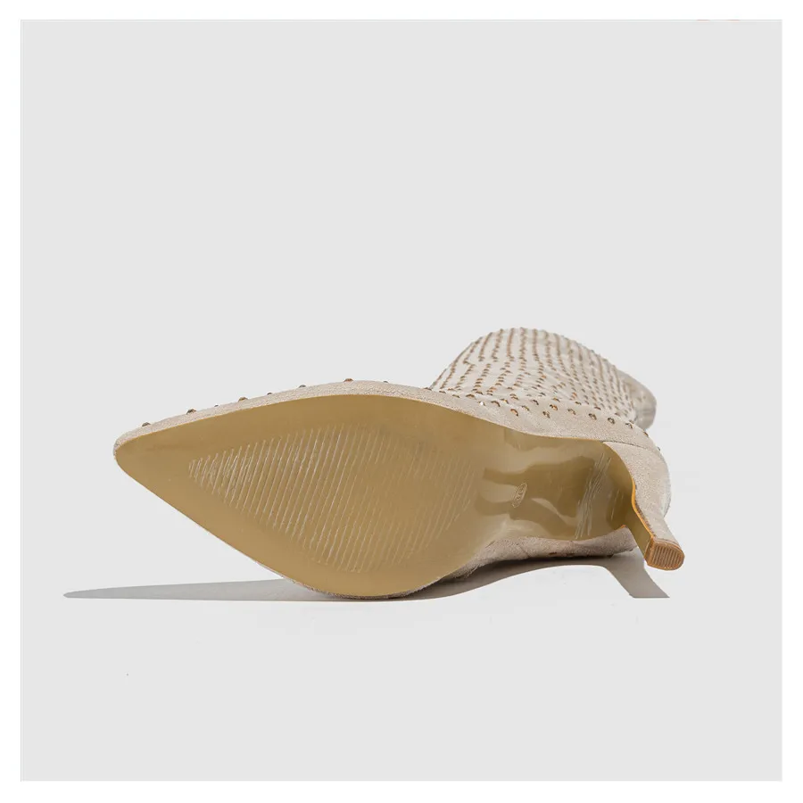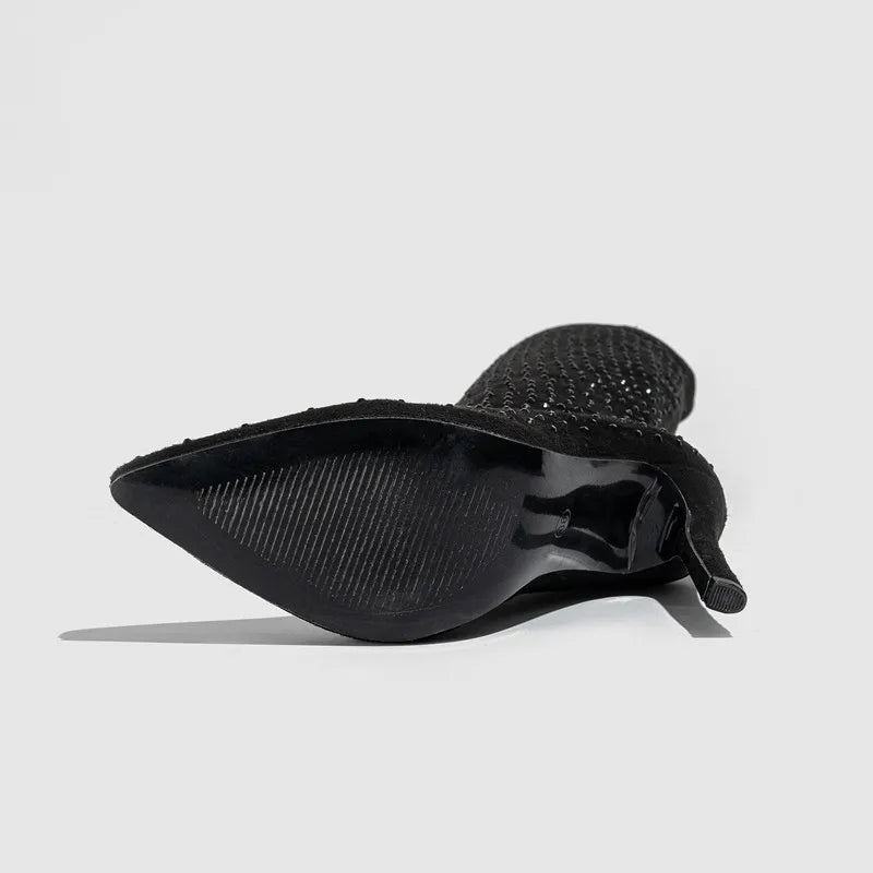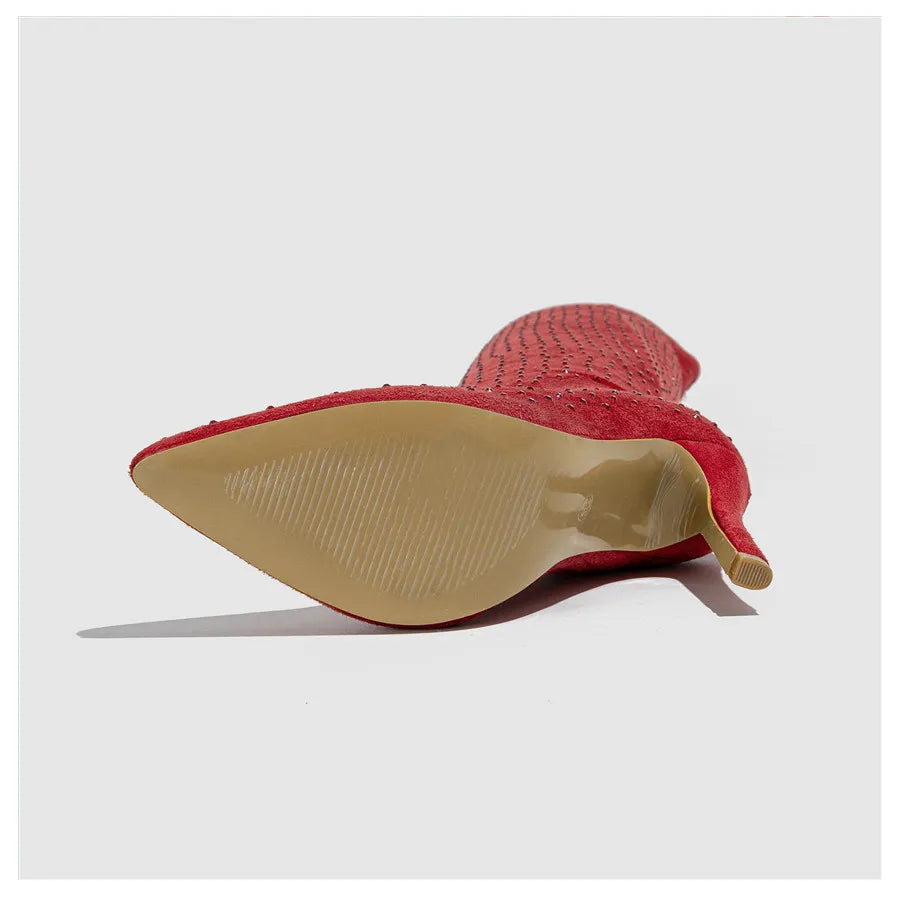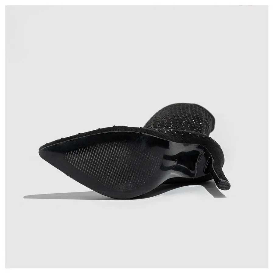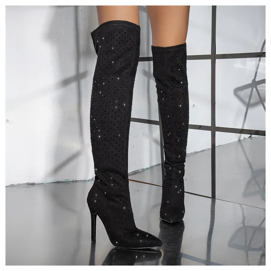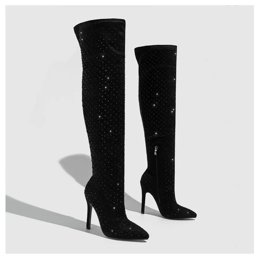 Bling Bling Rhinestones Faux Suede Elastic Women Thigh High Boots Fashion Autumn Winter High heels Over the Knee long Boots Shoes