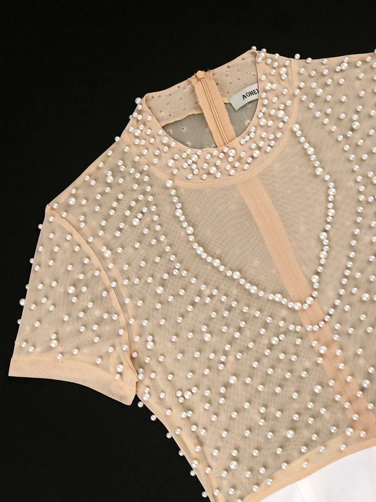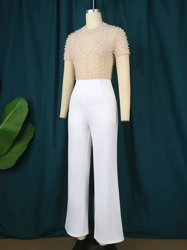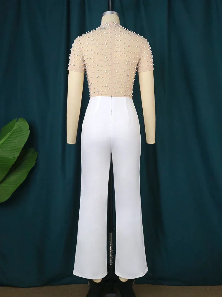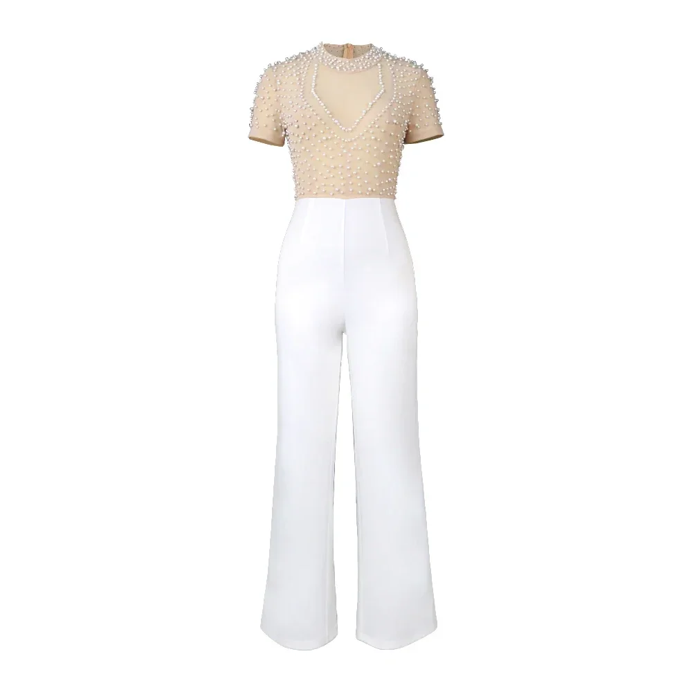 Customized Elegant Jumpsuits & Rompers for Women O Nec Short Sleeve Beaded High Waisted Luxury Female Birthday Dinner Party Over