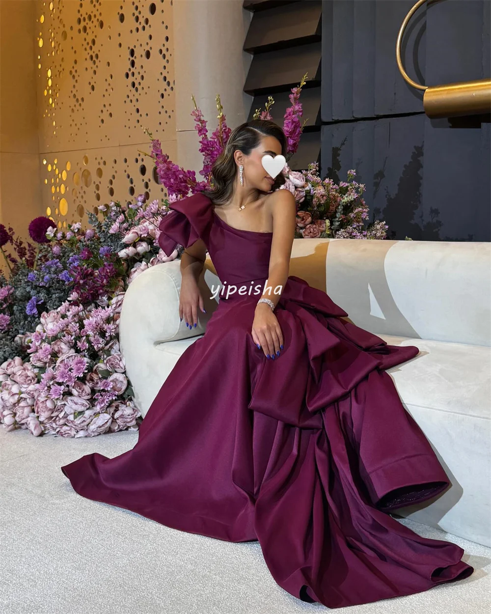 Customized Modern Style Exquisite Pleat Ruched A-line One-shoulder Long Dresses Bespoke Occasion Dresses Sizes Available Elegant