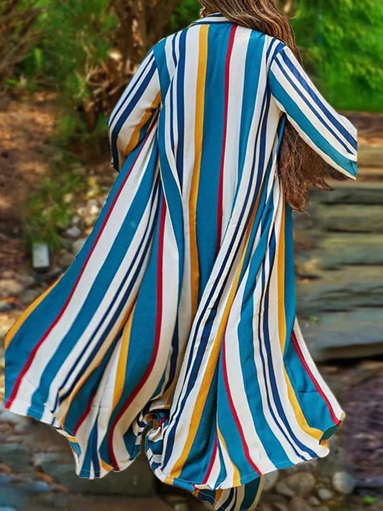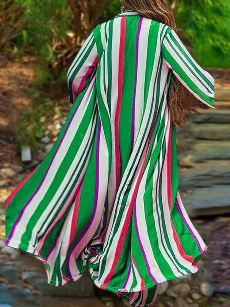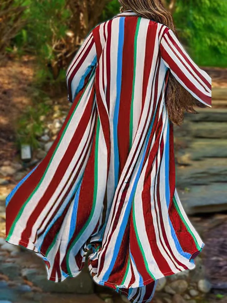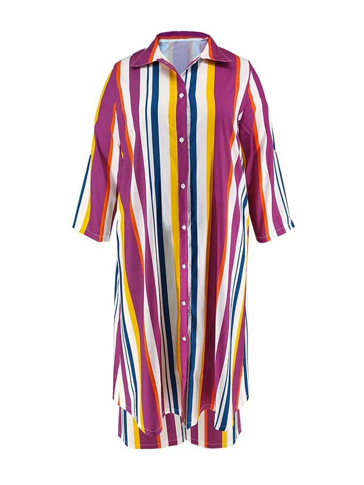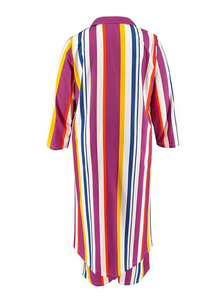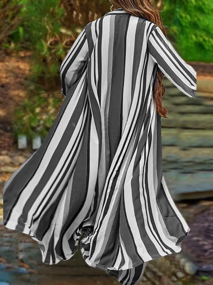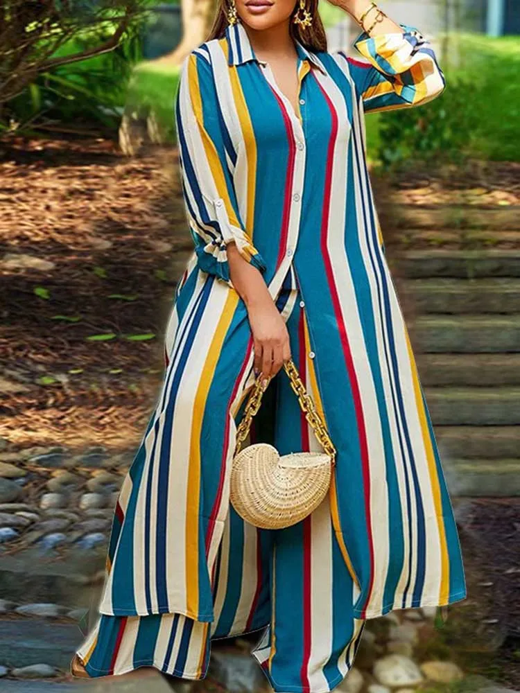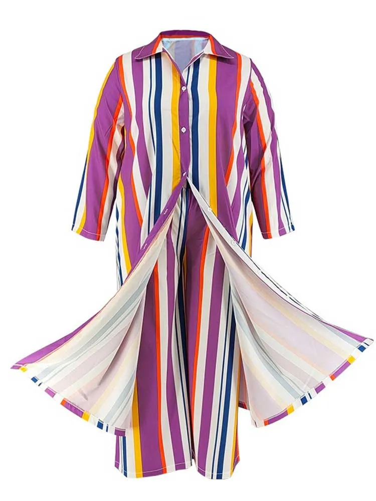 Elegant 2-piece Sets for Women Fall Winter Outfits Pants Suit with Long Shirt Blouse Full Sleeve Striped Plus Size Matching Sets