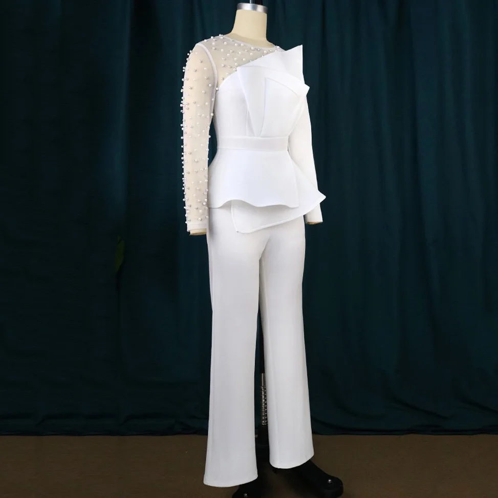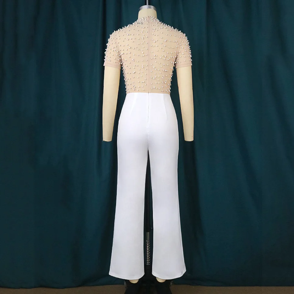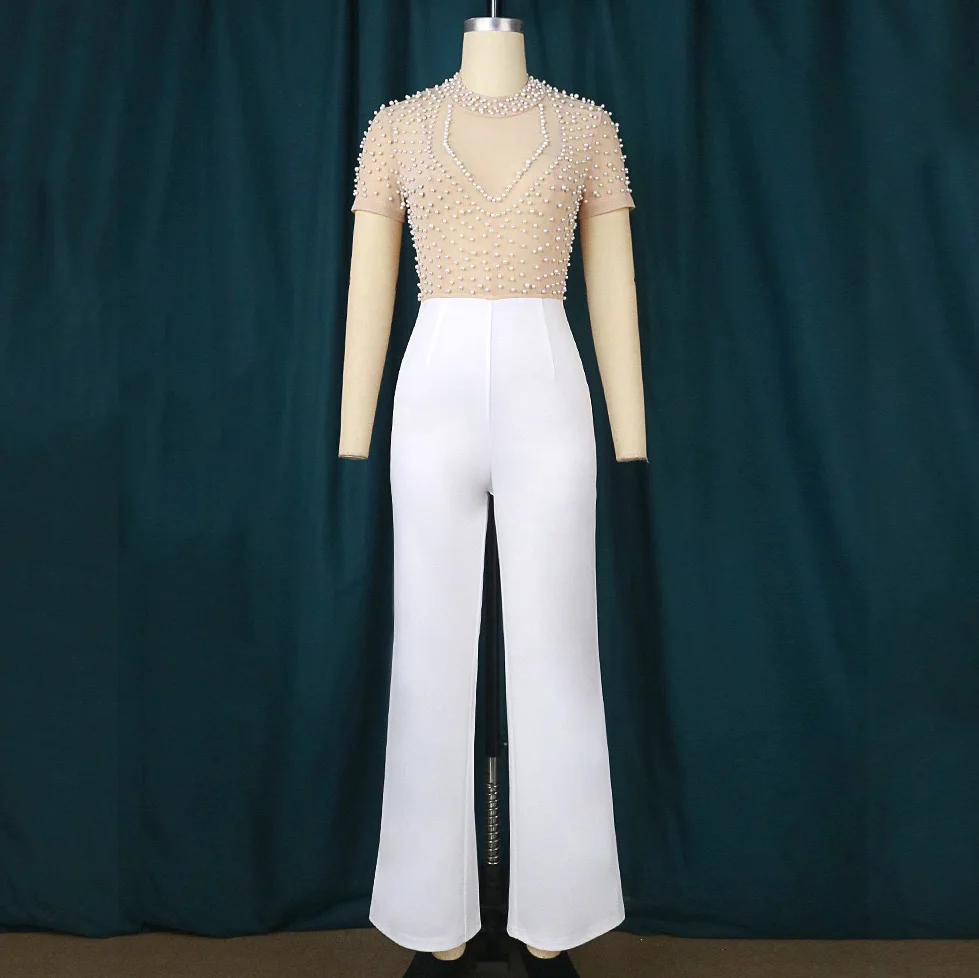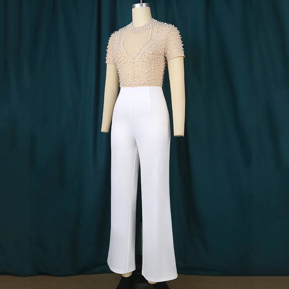 Elegant Jumpsuits & Rompers for Women White Black Beaded High Waisted Luxury Fashion Birthday Party Long Overalls Clothes New Wholesale Items for Business In Bulks Lots for Resale Clothing Female Boutique Beauty product Supplies New Arrivals