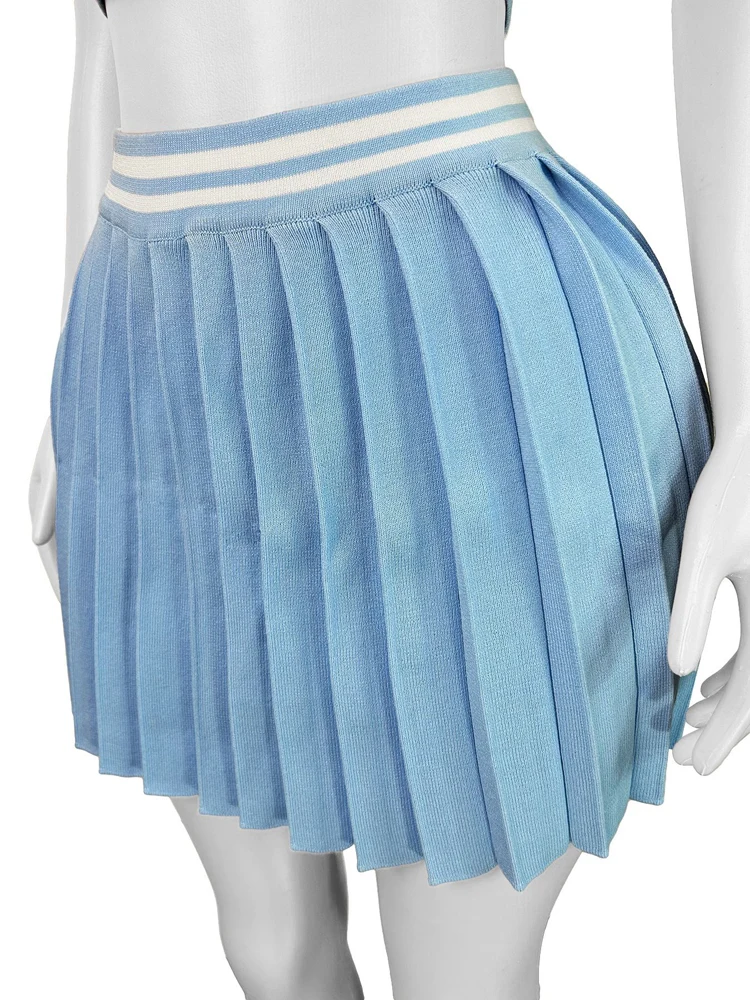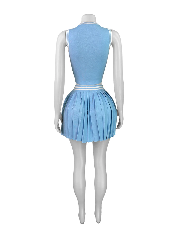 Fashion Women Sets Sleeveless Crop Top Pleated Skirt Suit 2025 Summer Cute Beach Club Knitted Two 2 Piece Set Outfits Tracksuit