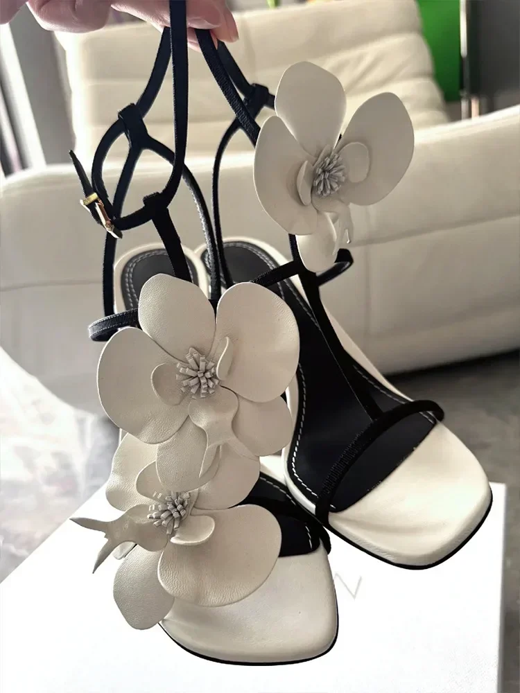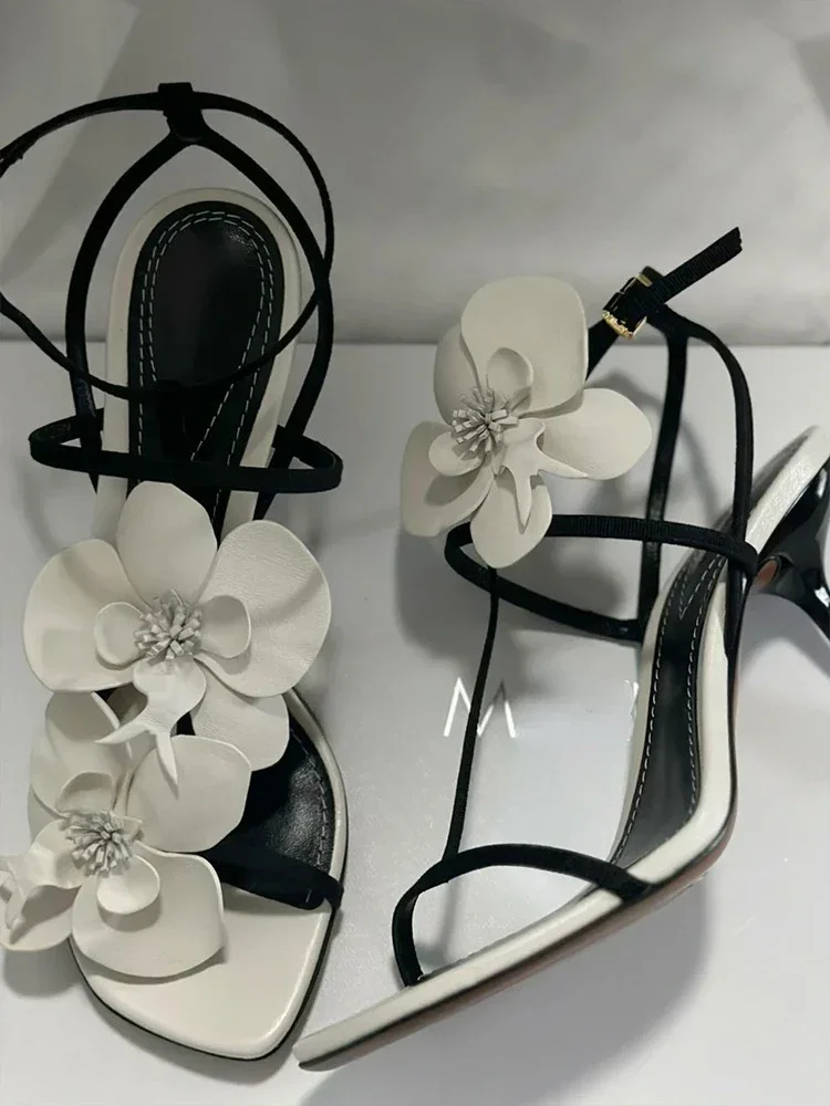 Flower Designer Heels Sandals Women Open Toe Narrow Band Slingback Shoes Ankle Strap Elegant Party Wedding Shoe Zapatos De Mujer