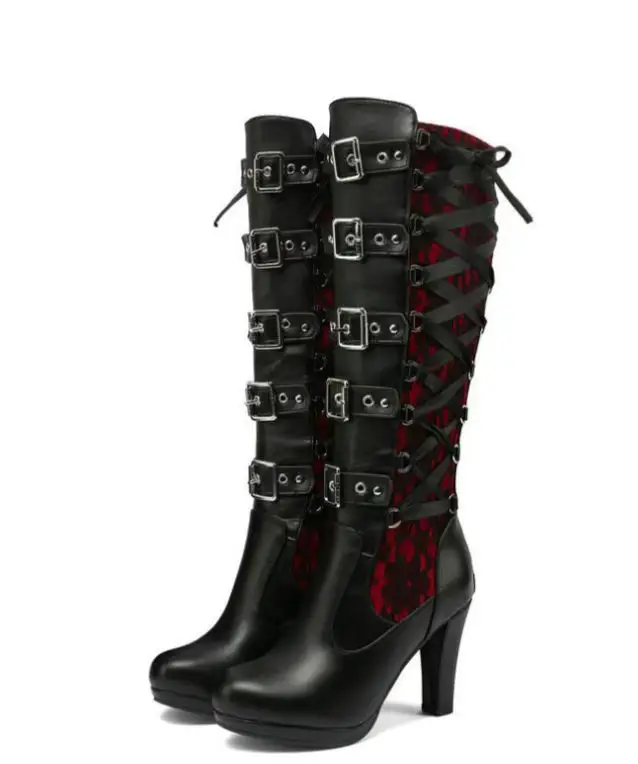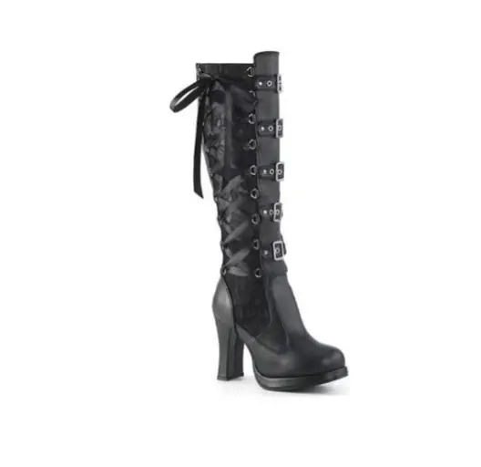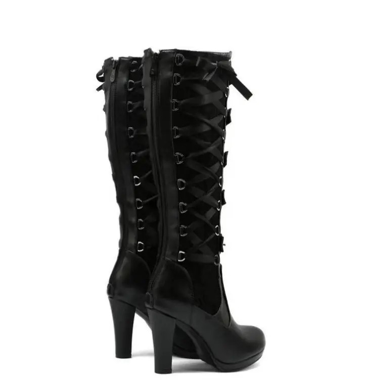 High-heeled boots Platform Boots for Women Lace Up Chunky High Heel Mid Calf Boots Narrow Band Bow Knot Goth Gothic Shoes 2025