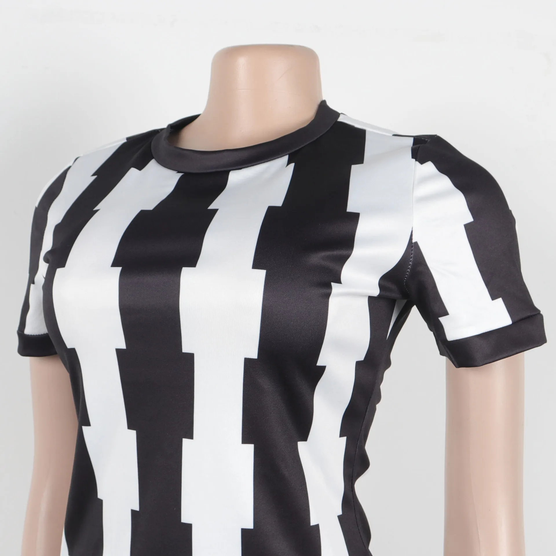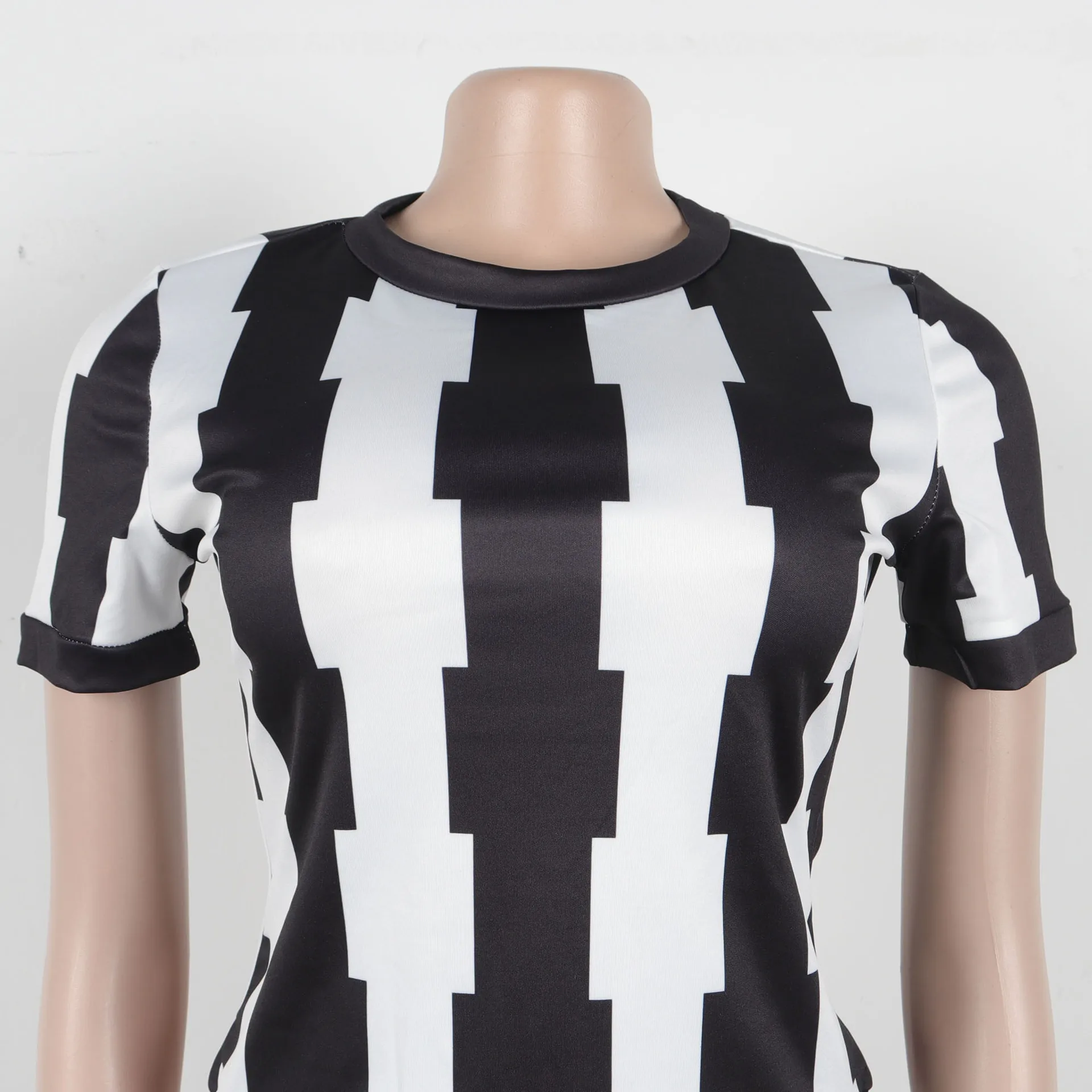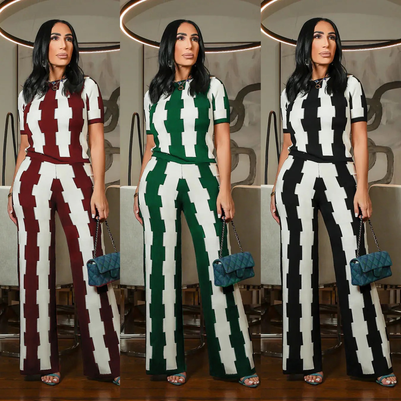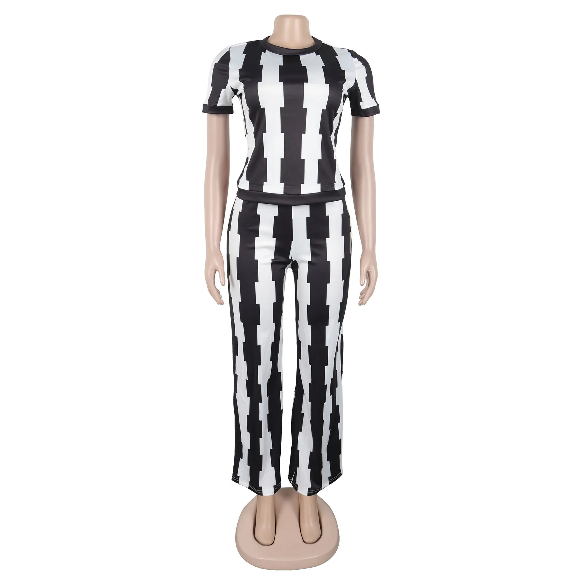 Hot Style Stripes Printing Women Pants Suit Casual Sport Two Pieces Set Summer Short Sleeves T Shirt and Trousers