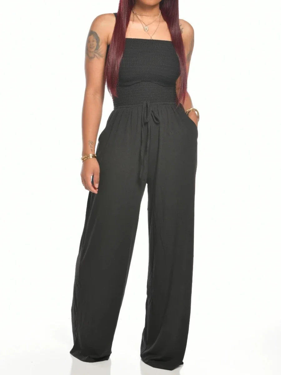 Jumpsuits Women Bodysuit One Pieces Outfits Romper Sexy Flat Shoulder Wrapped Chest Wide Leg Siamese Summer Female Clothing