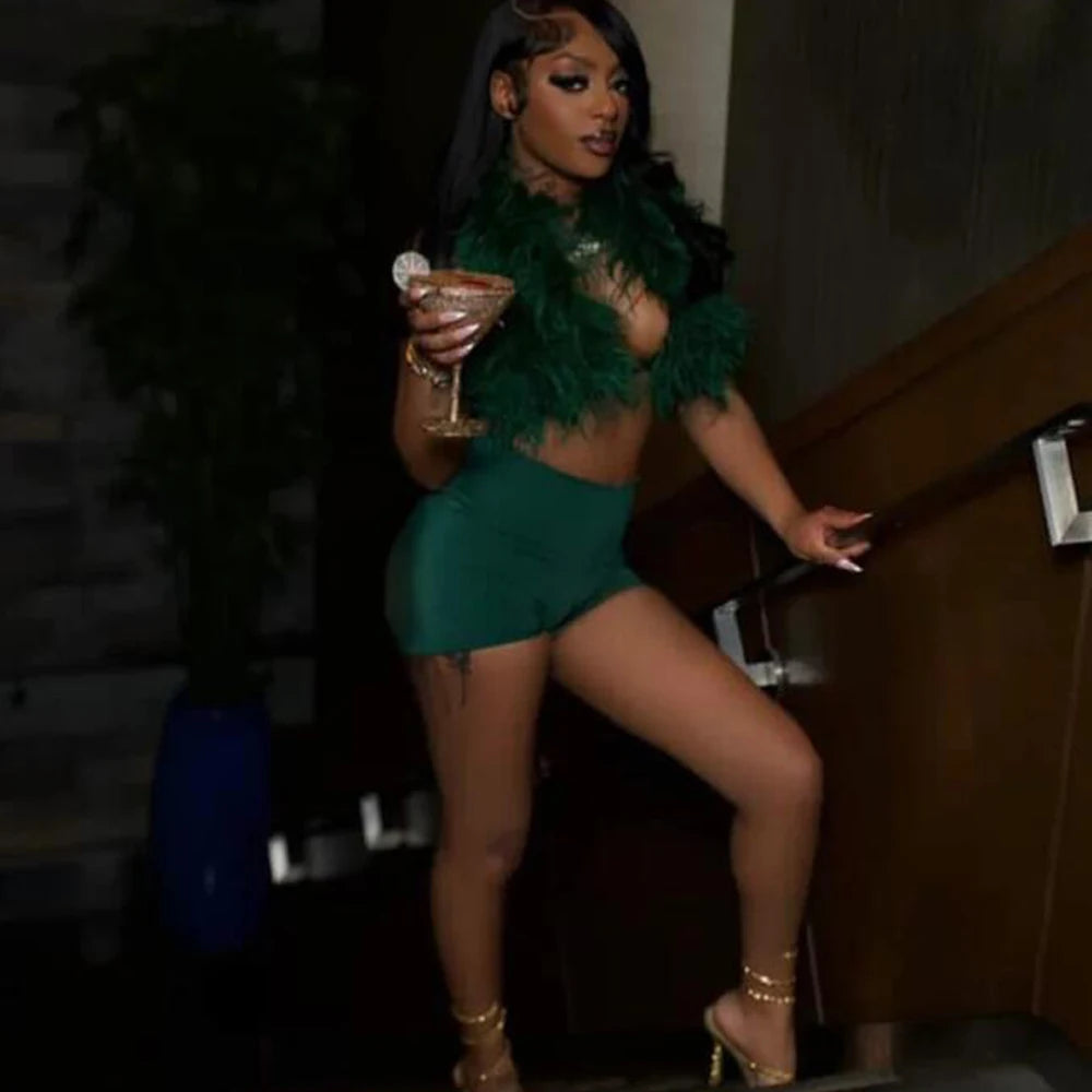Luxury Fur Patchwork 2 Pieces Set for Woman Outfit Summer 2025 New Tank Top and Stretch Shorts Midnight Club Wear Party Suits