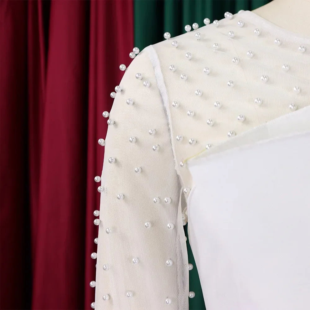Luxury Jumpsuits & Rompers for Women Round Neck Beaded Transparent Sleeve High Waisted Elegant Female Birthday Party Overalls