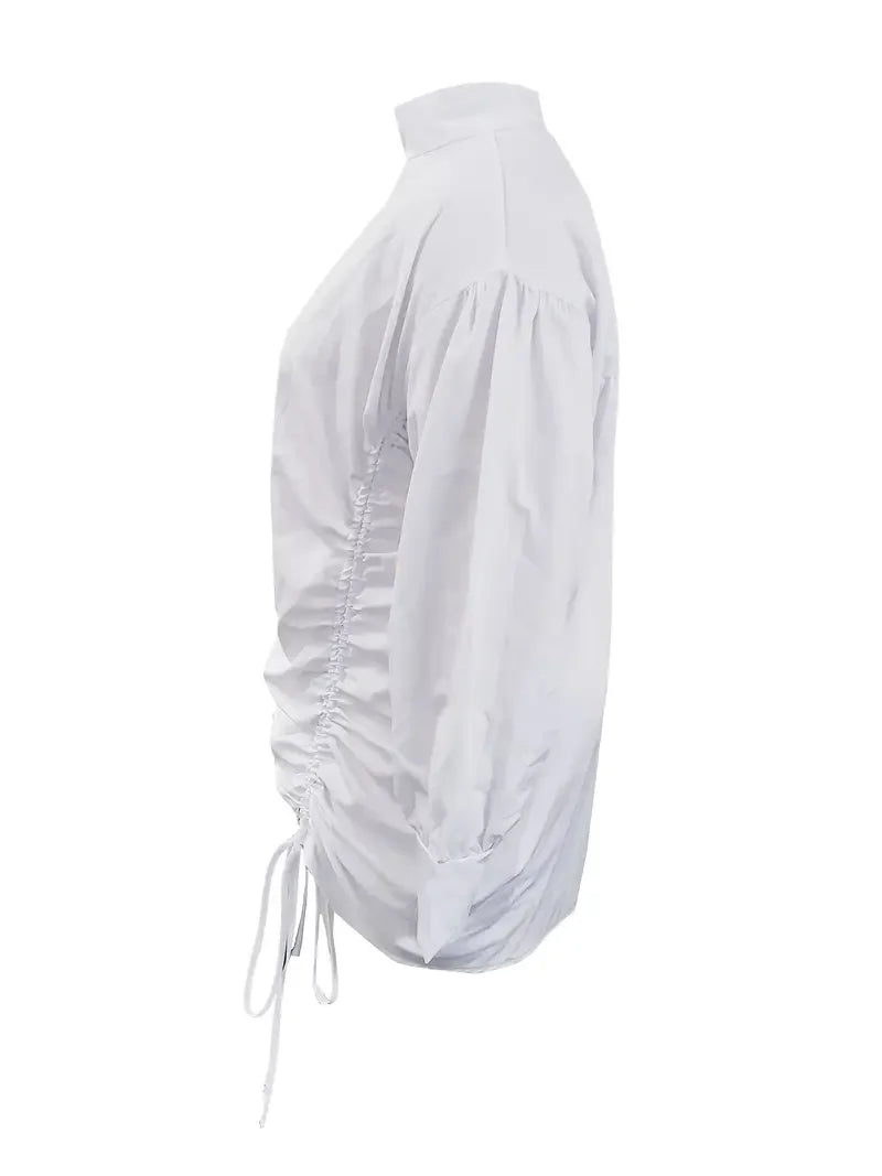 LW Plus Size Dresses Half A Turtleneck Fold Design Shirt Dress Lantern Sleeve Loose Mock Neck Straight Drawstring Women dress
