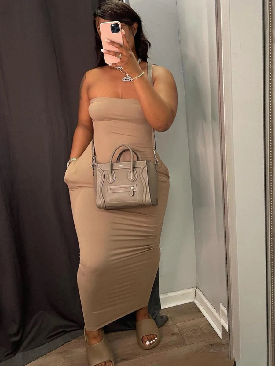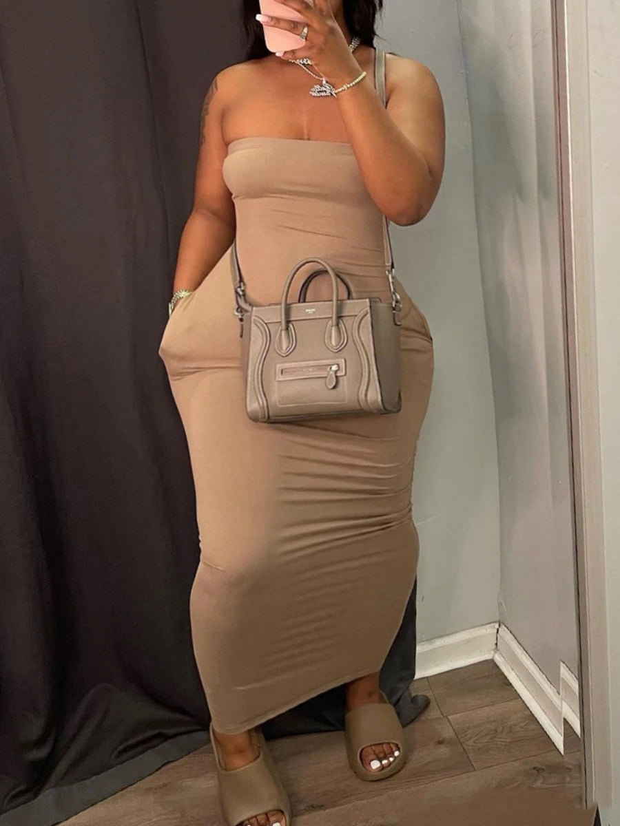 LW Plus Size dresses Off The Shoulder Pocket Design Dress summer sleeveless sexy dress vestido Fashion Elegant maxi dresses