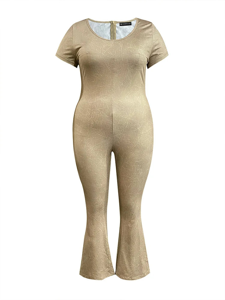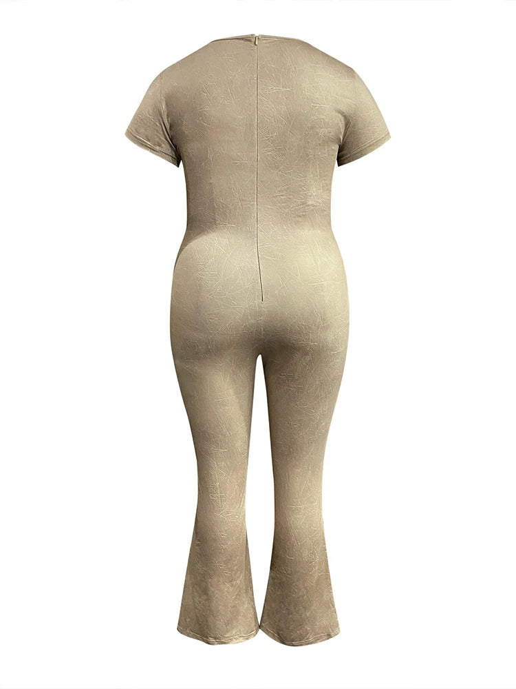LW Plus Size Flared Jumpsuits for Women Autumn Casual Short Sleeve V Neck Zipper Skinny Trousers Large Size Full Jumpsuit Woman