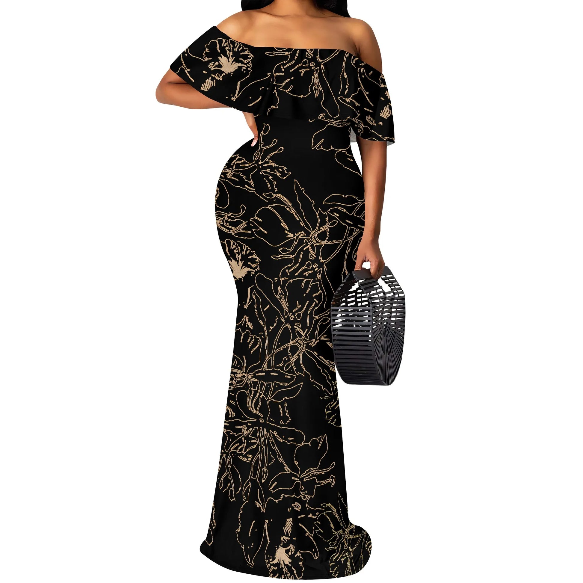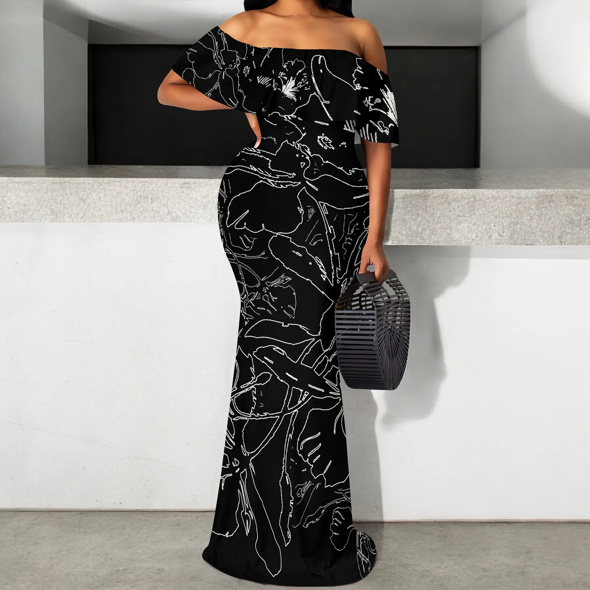 Women's Plus Size Off Shoulder Peacock Feather Print Maxi Dress Summer Party Boho Elegant Long Dress