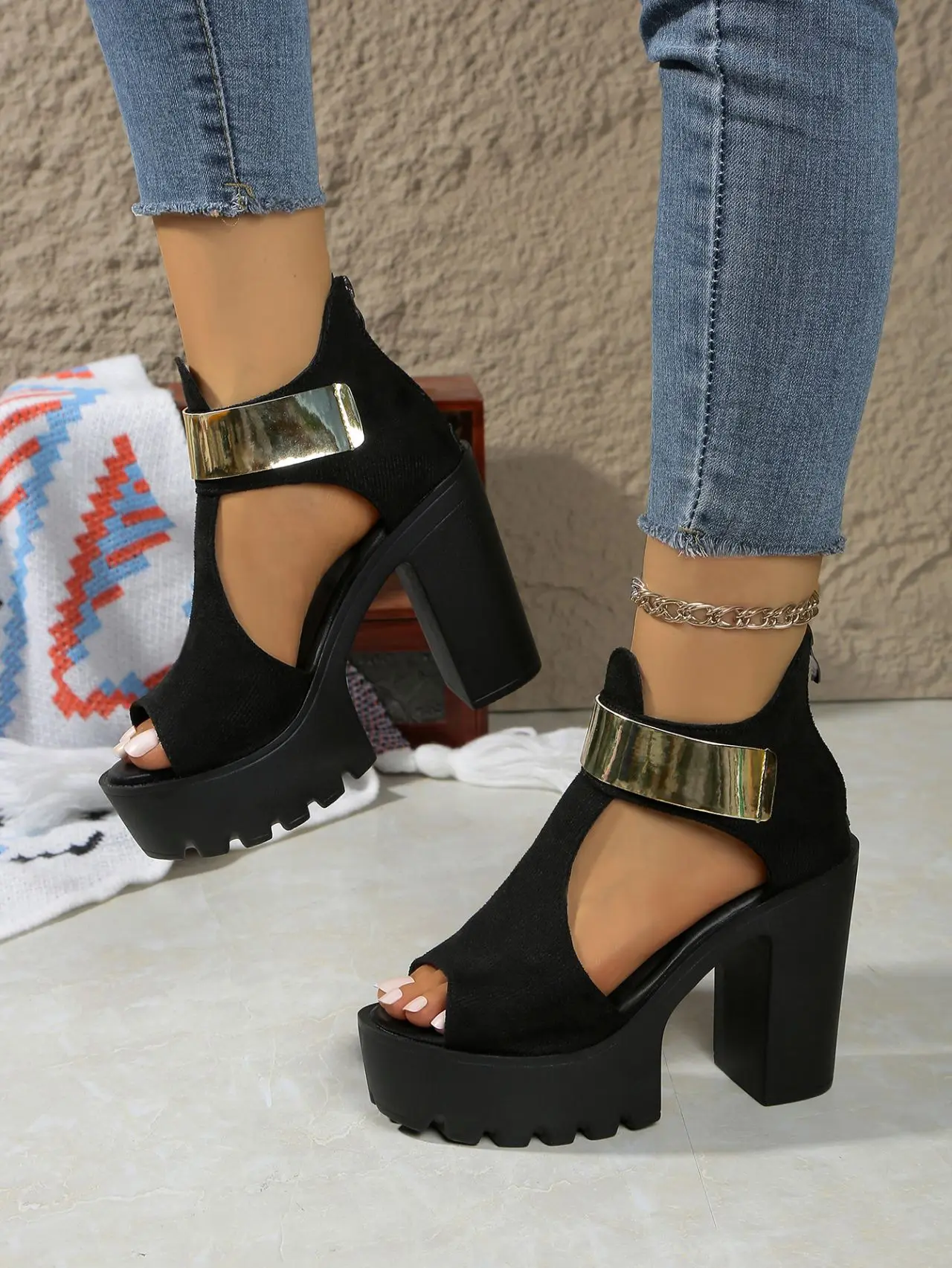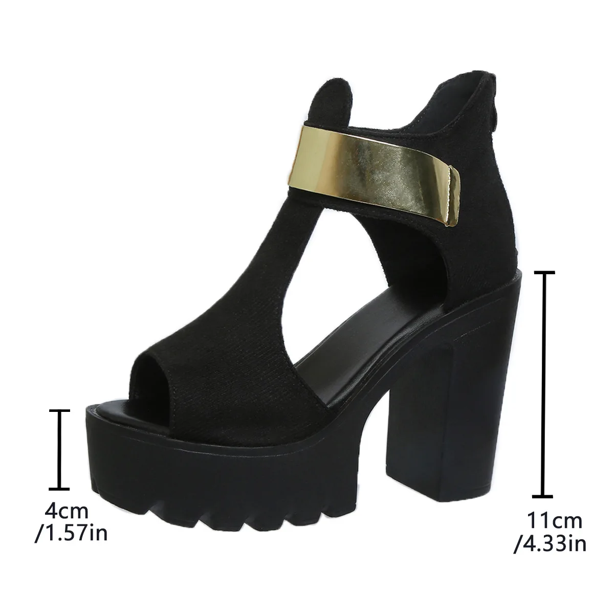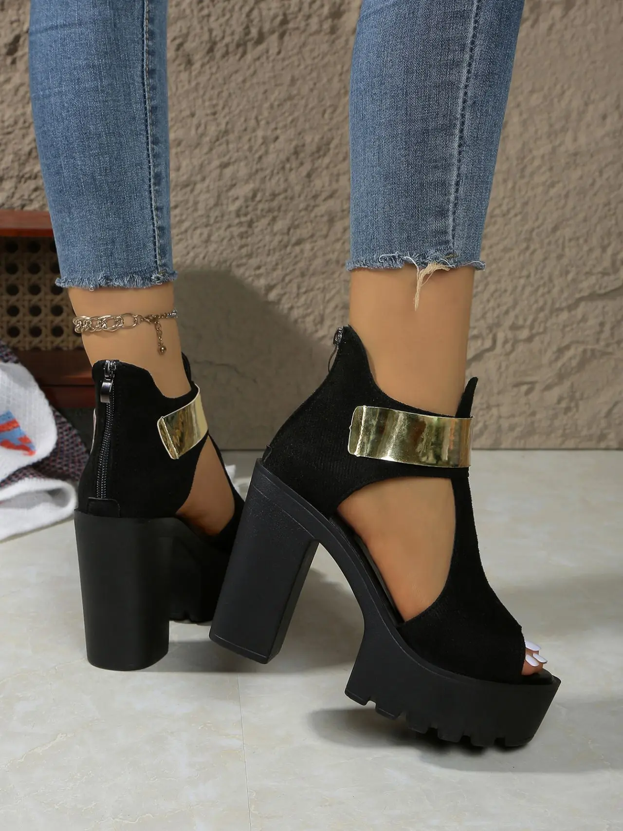 Open Toe Cutout Platform Rear Zipper Non-Slip Block Heels
