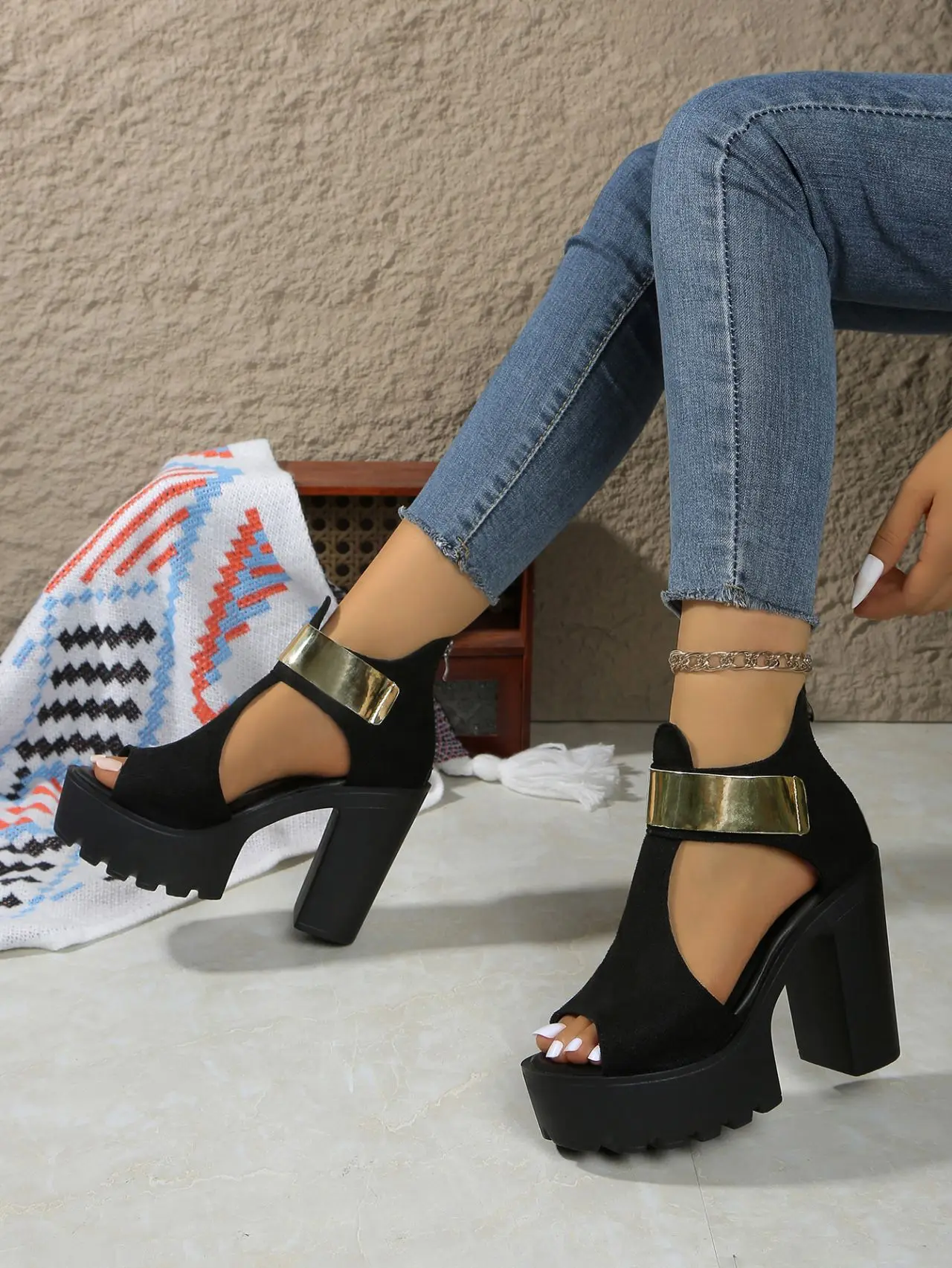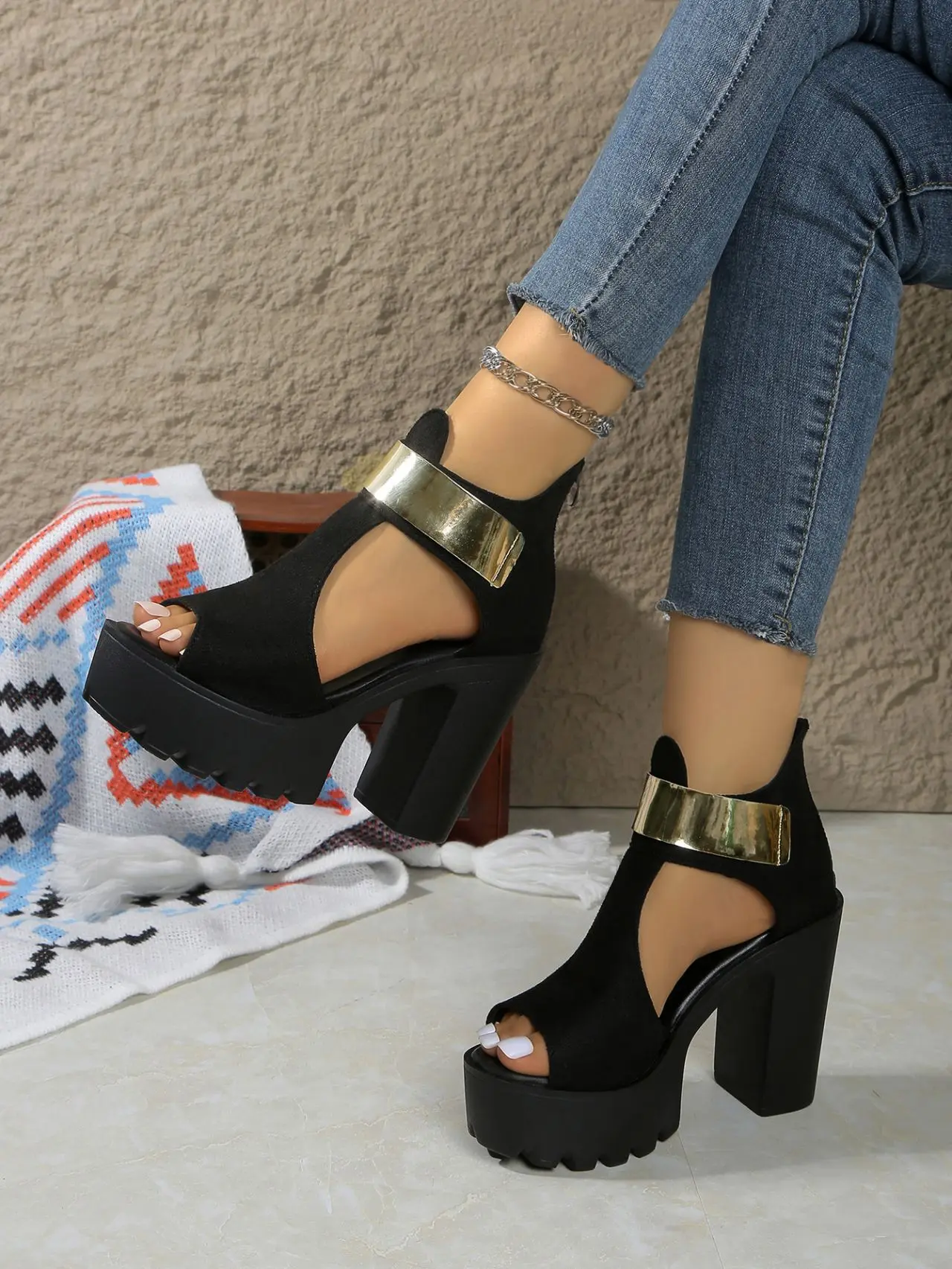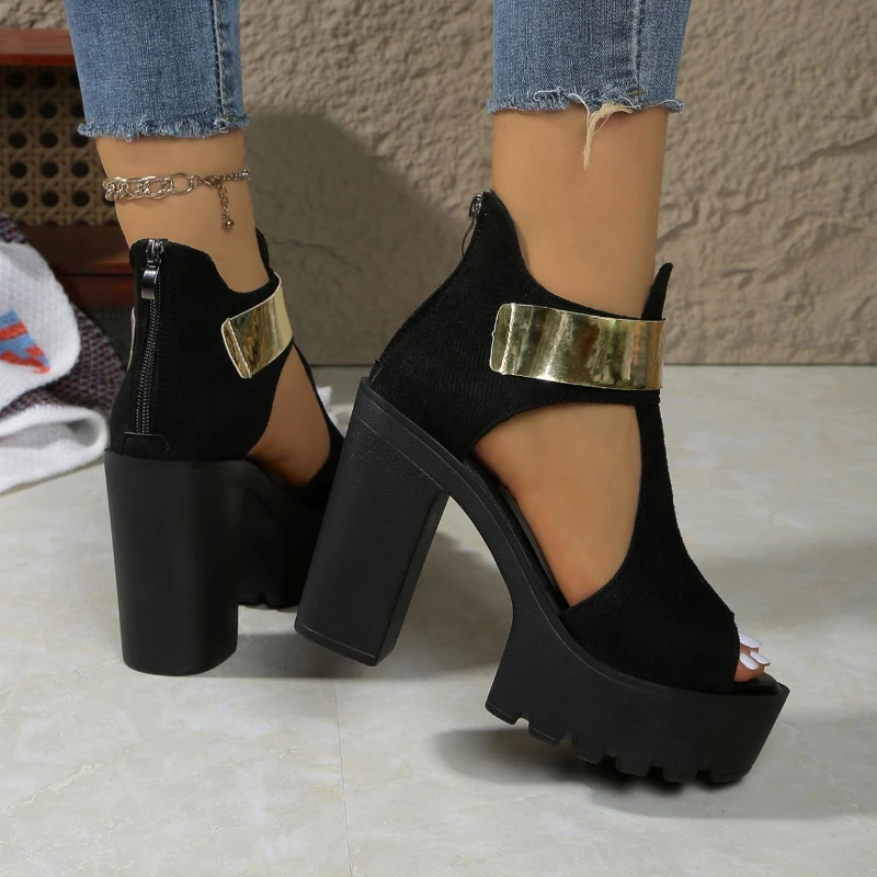 Open Toe Cutout Platform Rear Zipper Non-Slip Block Heels