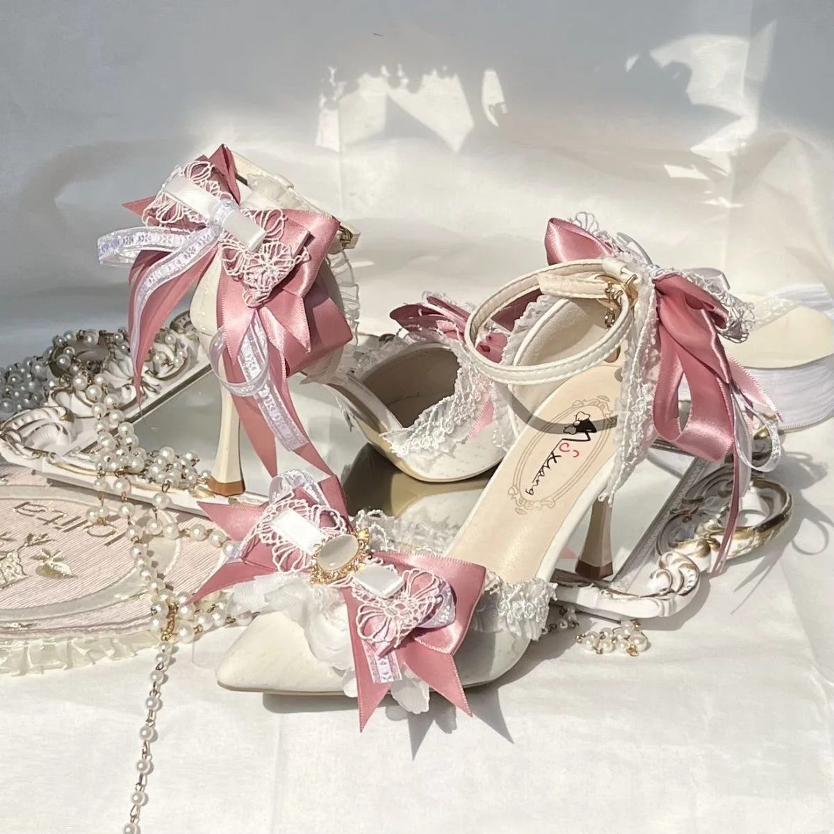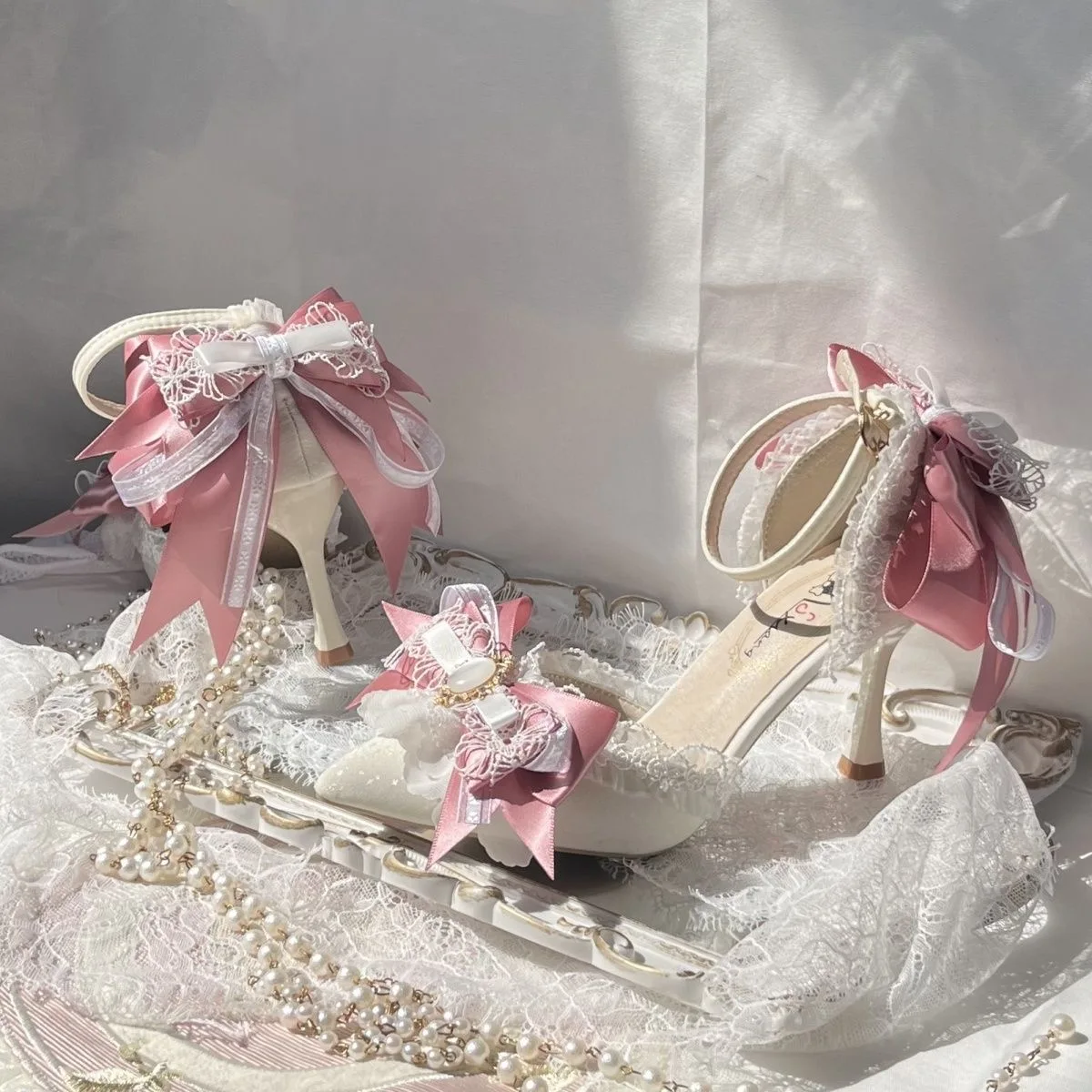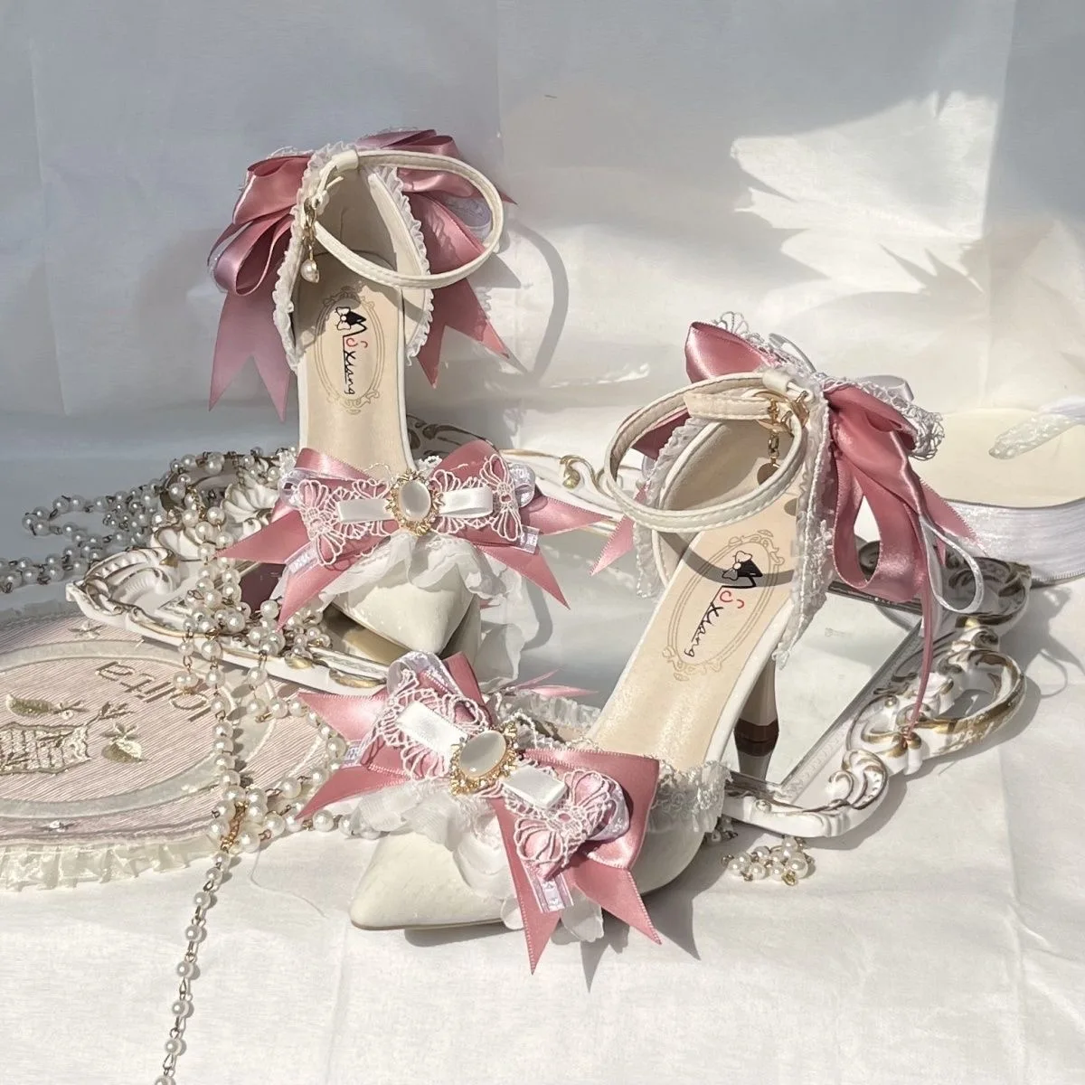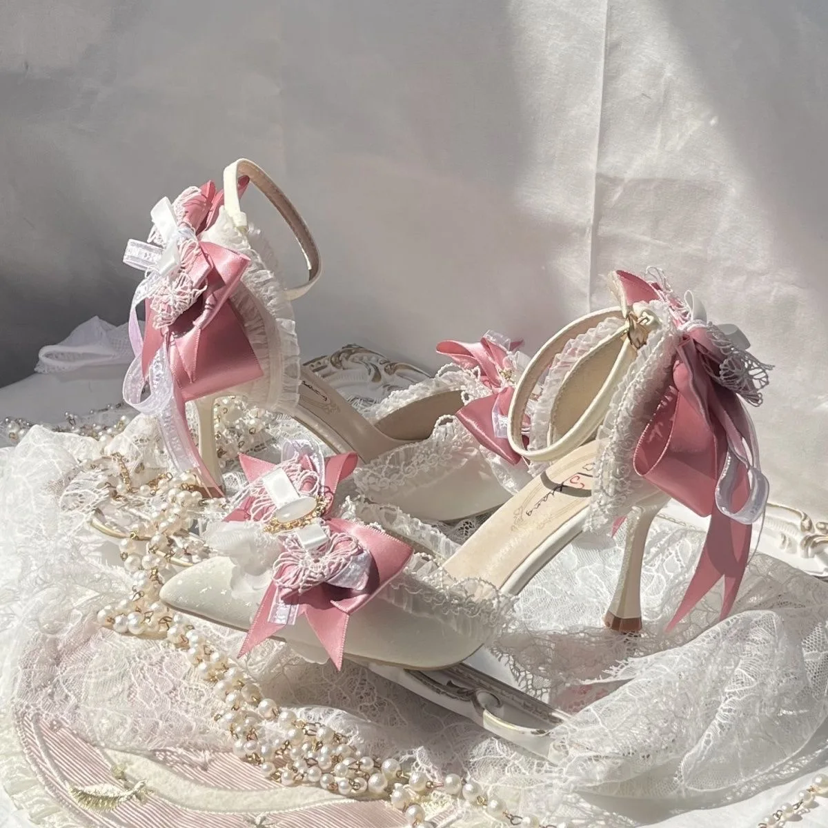 Pink Heeled Sandals Lolita Heels Shoe and Bag Set Luxury Woman High Heels Party Shoes Woman Bow Weddings Bridal Shoes Y2K Heels