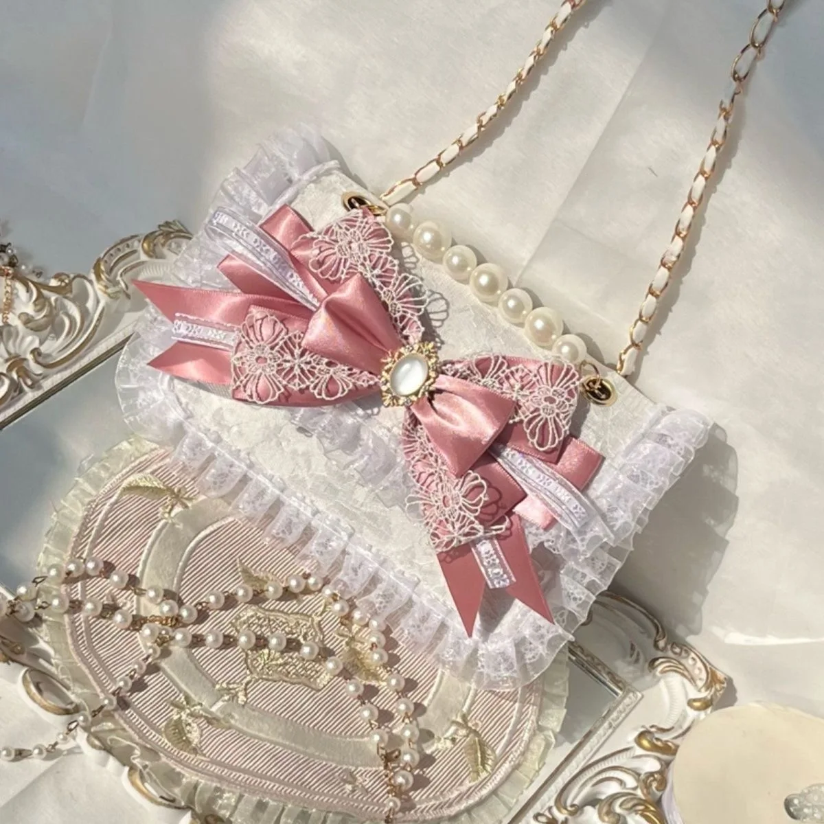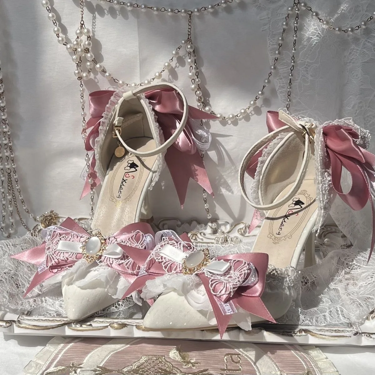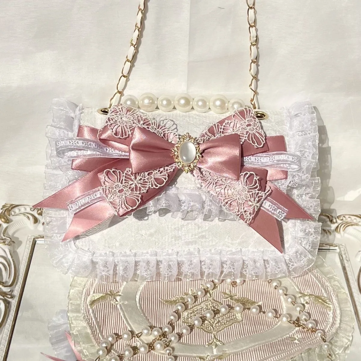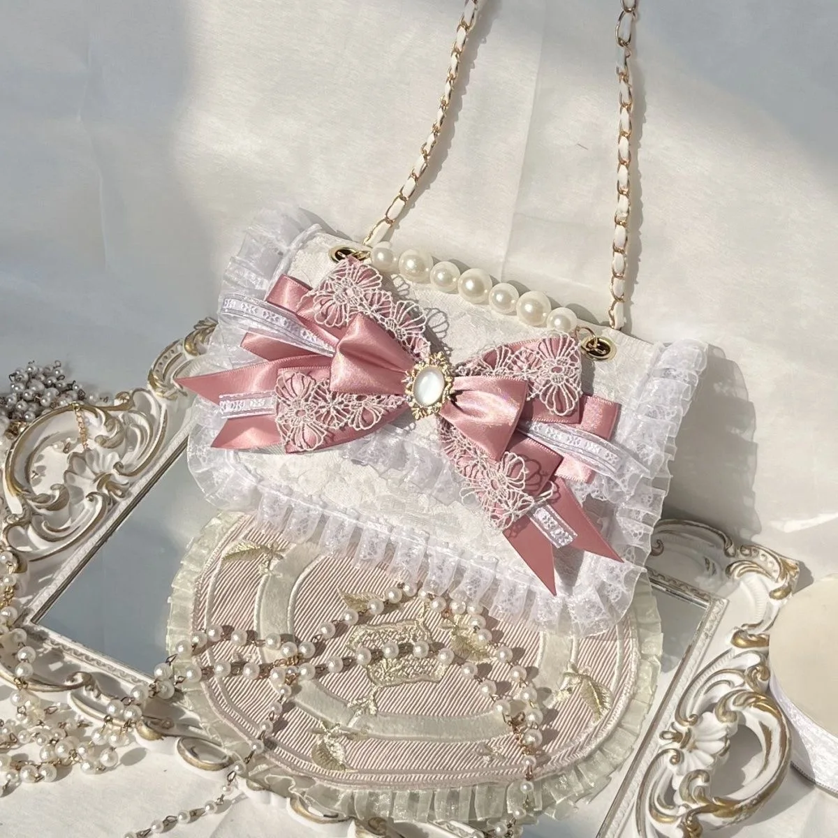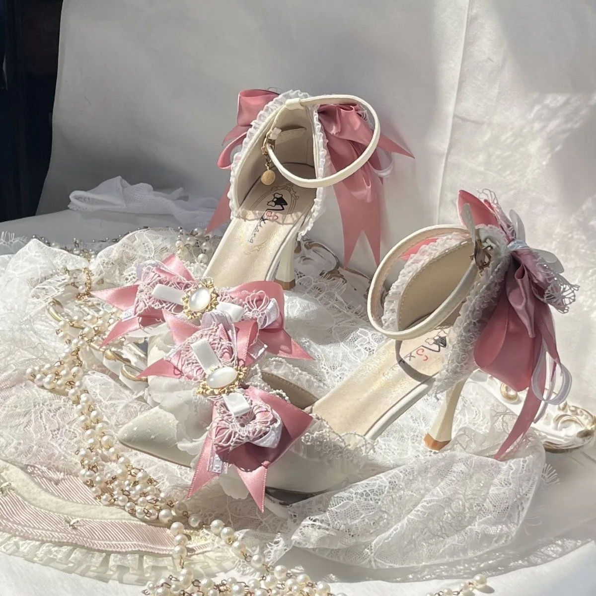 Pink Heeled Sandals Lolita Heels Shoe and Bag Set Luxury Woman High Heels Party Shoes Woman Bow Weddings Bridal Shoes Y2K Heels