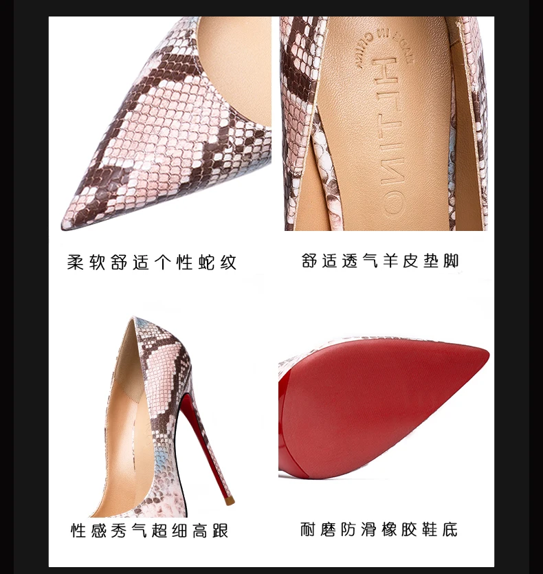 Pink snake pattern Women elegant High Heels Luxury Brand Pumps Pointed Toe Red sole Sexy Fashion Party Ladies Prom Shoes Women