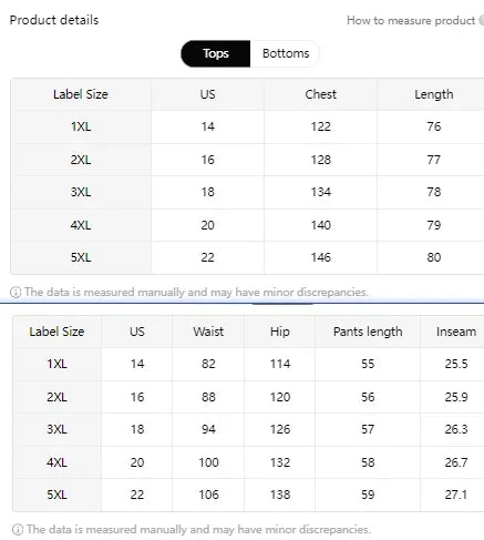 size_info: {"sizeInfoList":[{"length":{"cm":"122","inch":"48.03"},"size":"1XL","vid":12668979},{"length":{"cm":"128","inch":"50.39"},"size":"2XL","vid":200000322},{"length":{"cm":"134","inch":"52.76"},"size":"3XL","vid":115781},{"length":{"cm":"140","inch":"55.12"},"size":"4XL","vid":200000990},{"length":{"cm":"146","inch":"57.48"},"size":"5XL","vid":200000991}]}