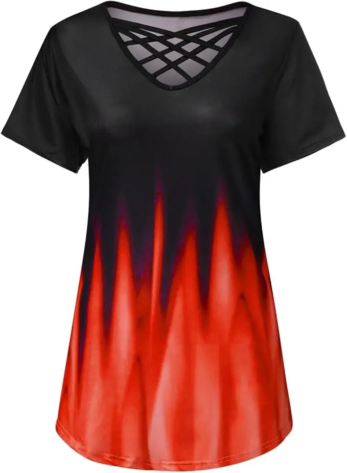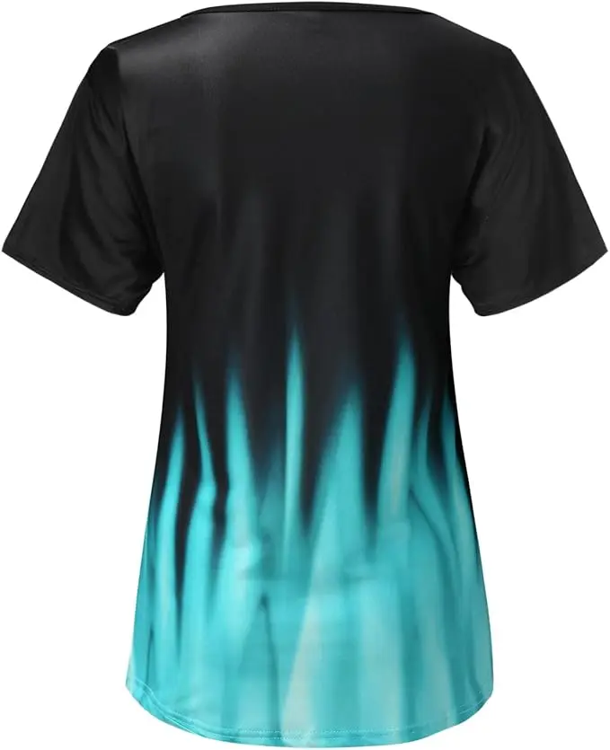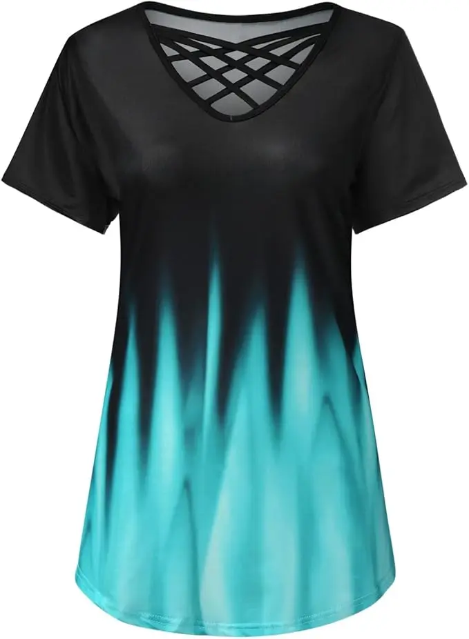 Plus Size 1XL-5XL Women Fashion Half Sleeve T-Shirt Printed Gradient BeltT-shirt Women'sCasual Color Gradient V-neck Cross Shirt
