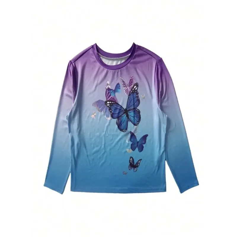 Plus Size 1XL-5XL Women's Fashion Round Neck Printed Long Sleeve T-shirt Top & Printed Pants Two Piece Set