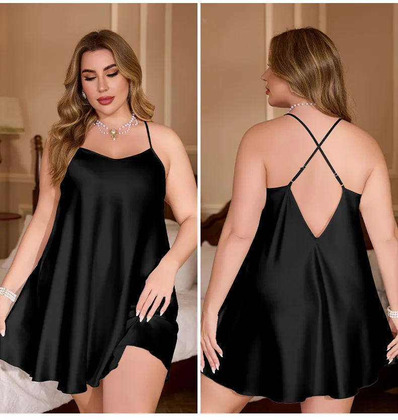 Plus Size 3XL 4XL 5XL Women Chemise Sleepwear Nightgown Sexy Spaghetti Strap Nightdress Lingerie Loose Casual Satin Homewear