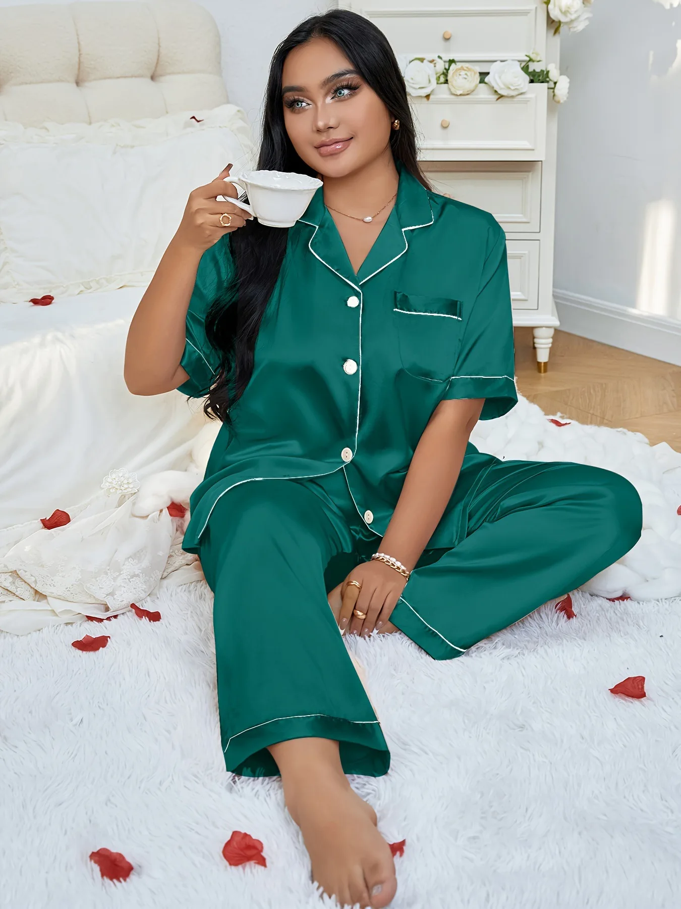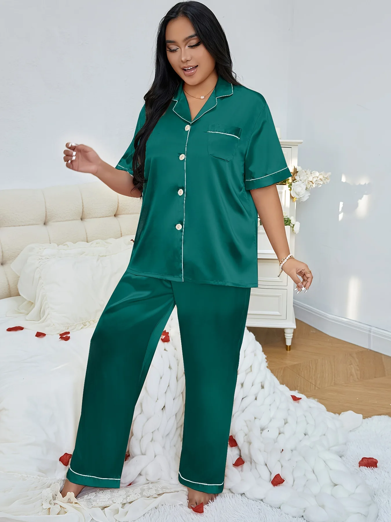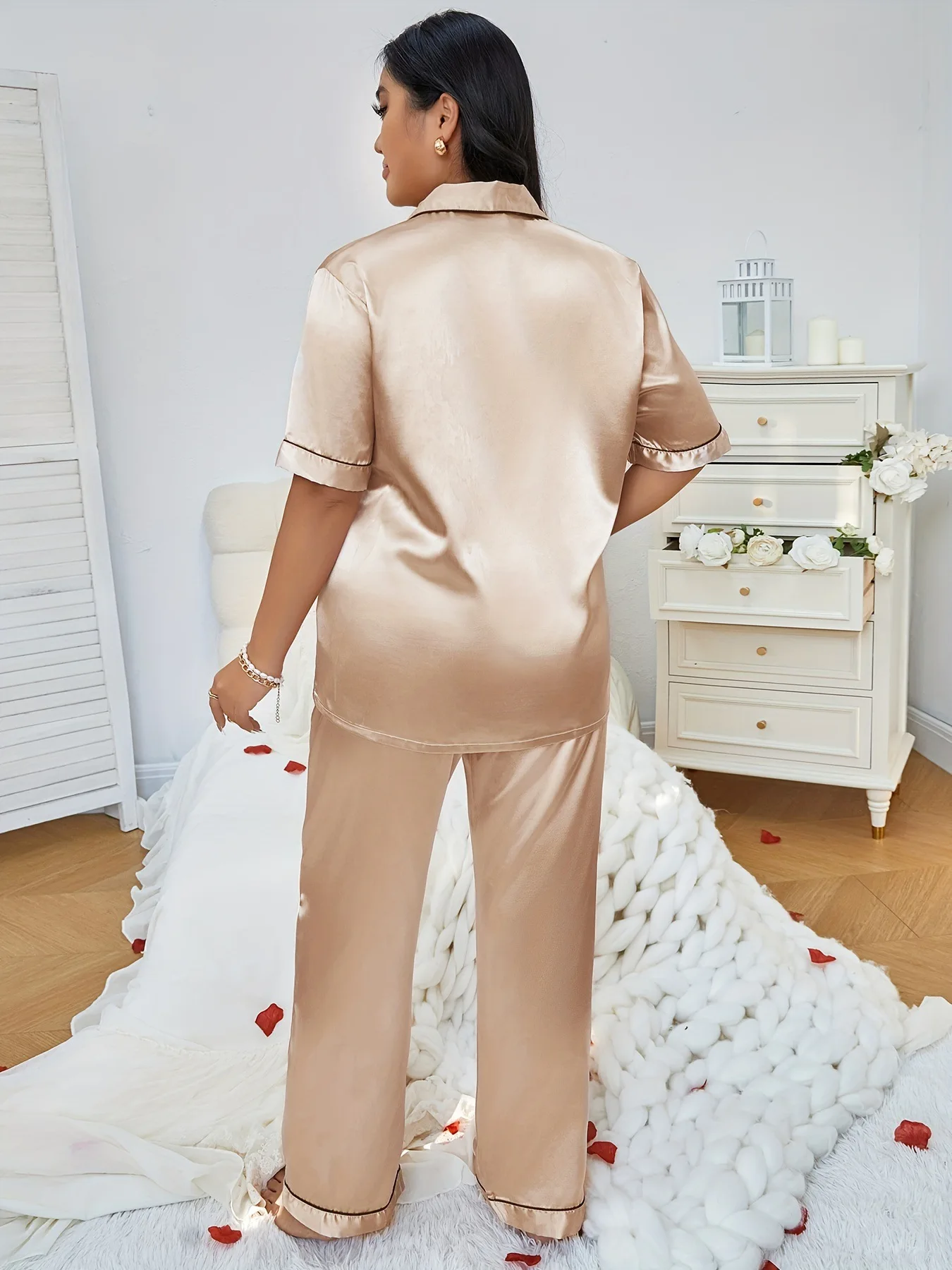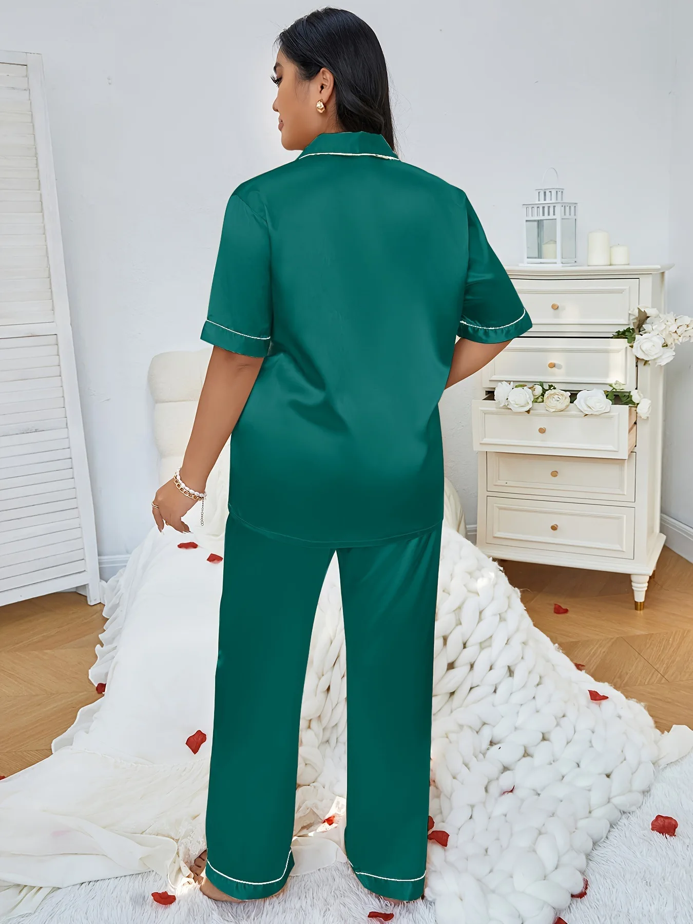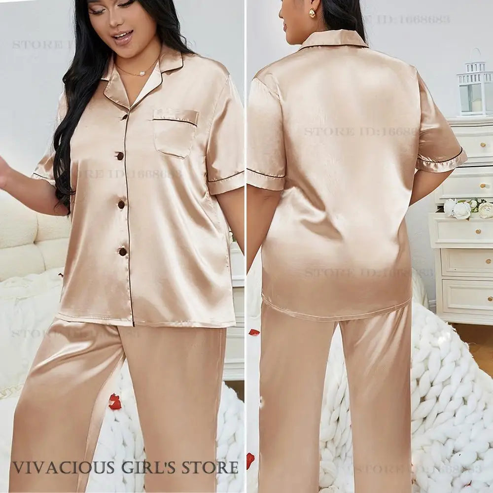 Plus Size 3XL 4XL 5XL Women's Sleepwear Pajamas Set Spring Summer Short Sleeve Trouser Suits Loungewear Loose Satin Homewear