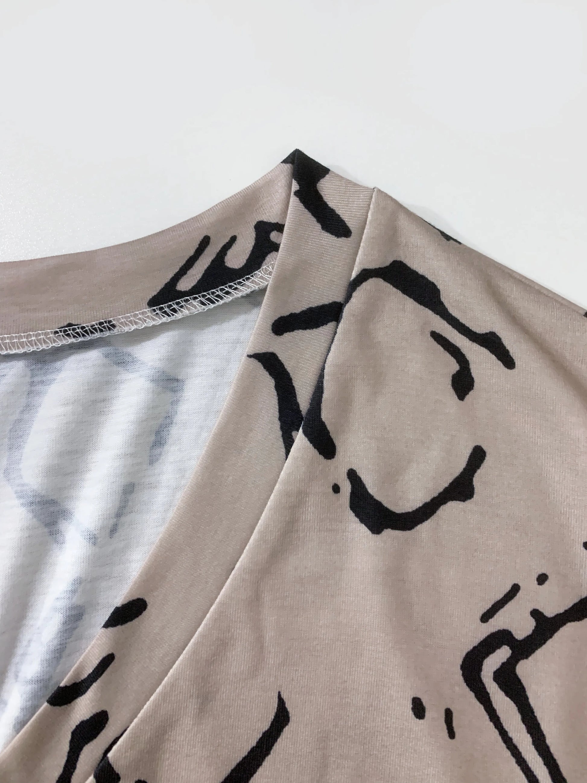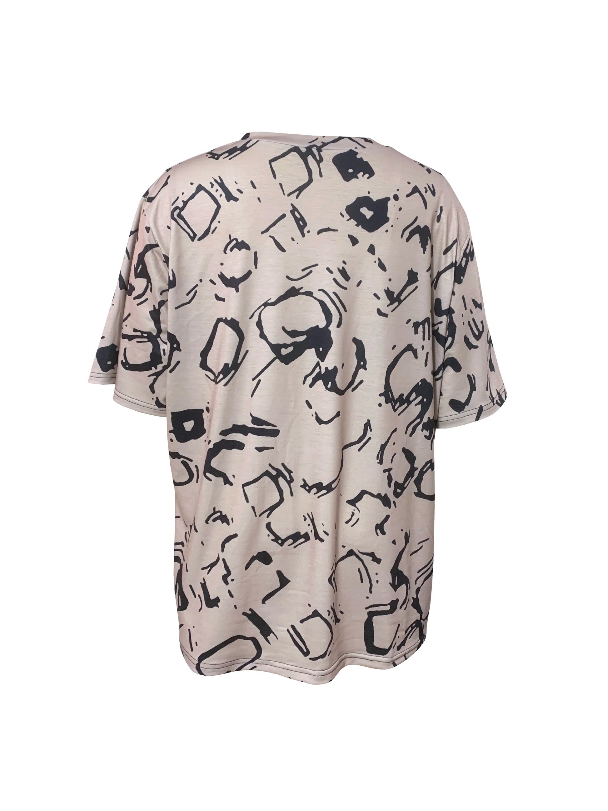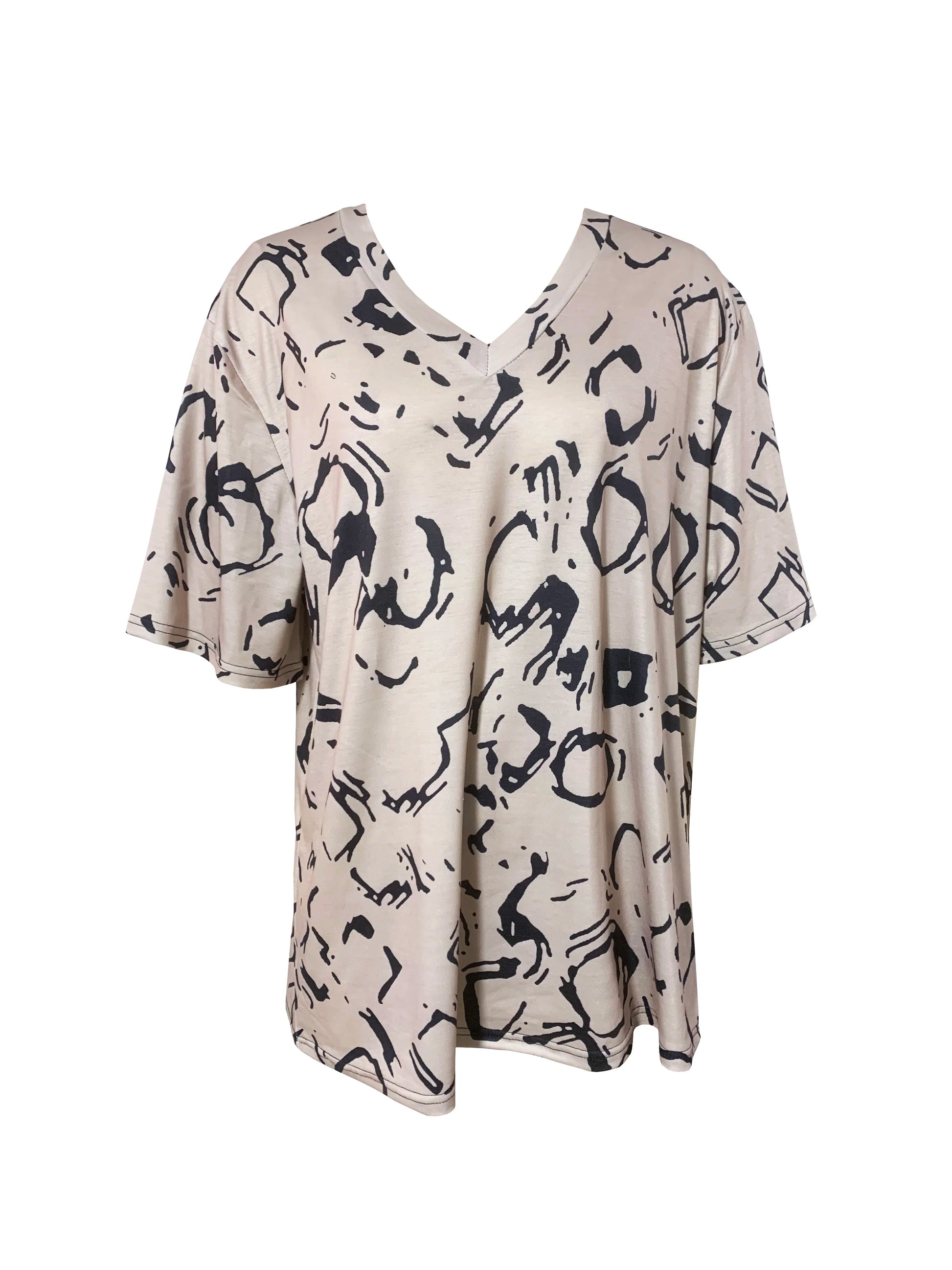 Plus Size Short Sleeve V Neck Allover Print T-shirt, Casual Top For Summer & Spring Women's Clothing