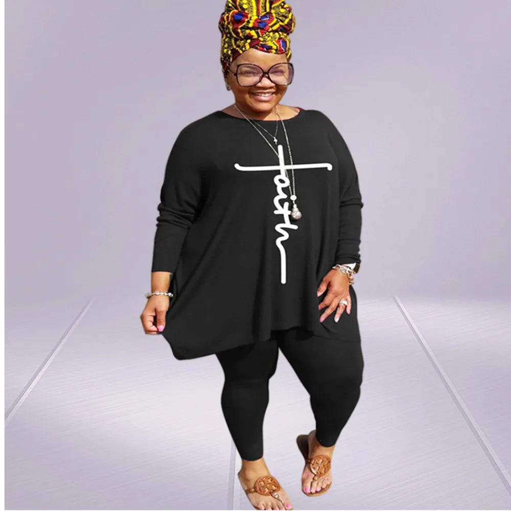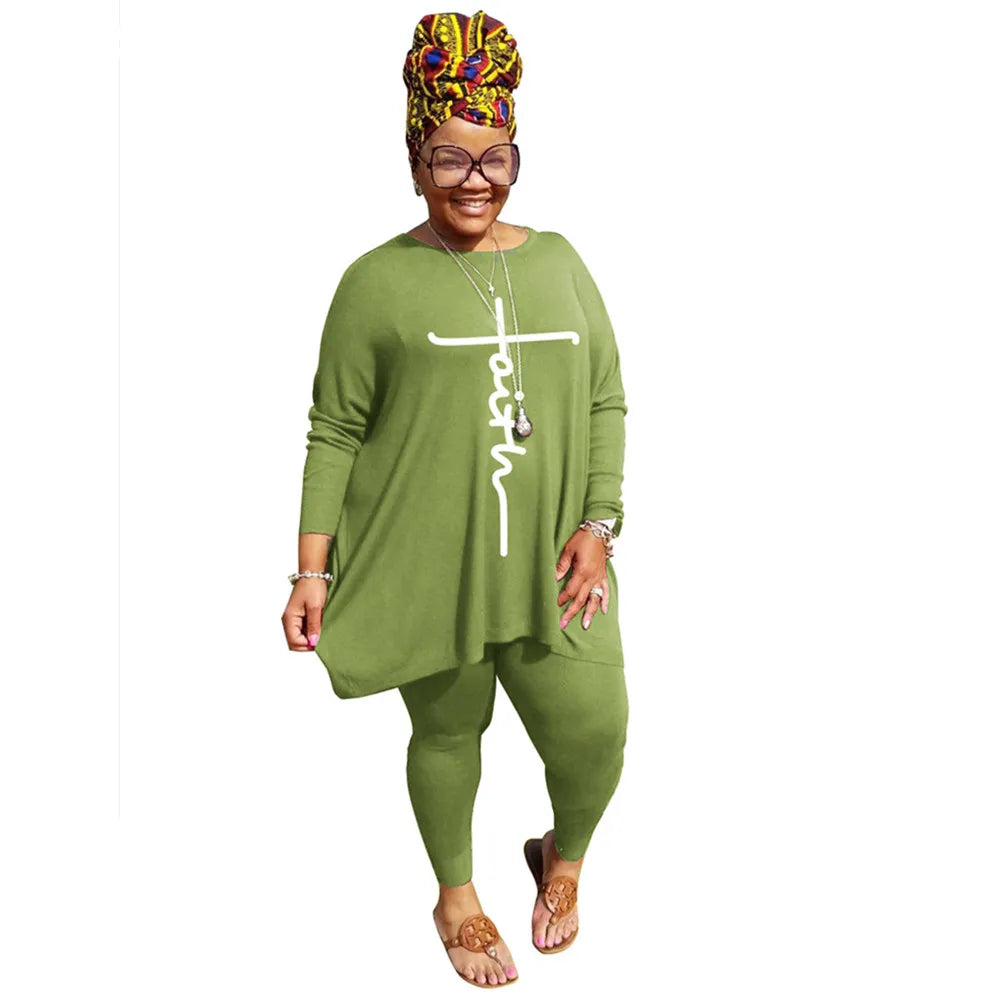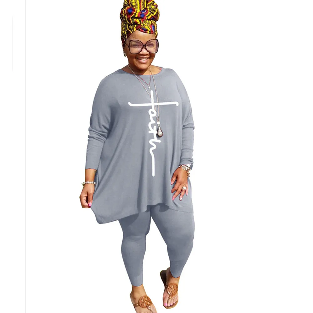 Plus Size Two Piece Set Women Clothing 2021 Crop Top Loog Sleeve Solid Pants Sets Fall Clothes Tracksuit Wholesale Dropship