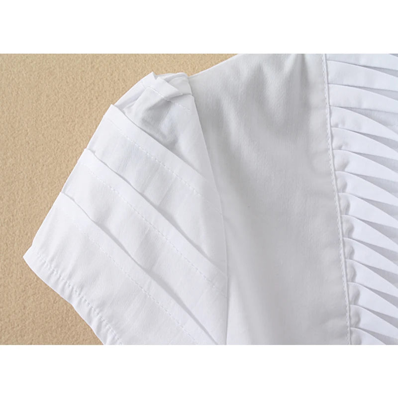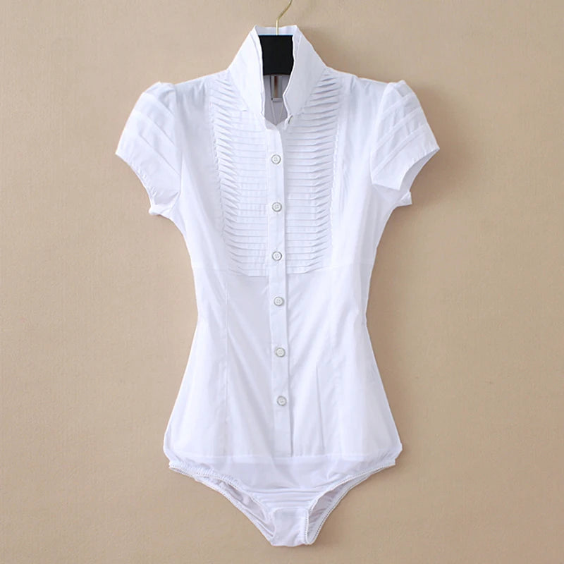 Plus Size Women Formal White Shirt Fashion Summer Short Sleeve Pleated Bodysuit Ladies Tops Blouse Black Stand Blusas Mujer 4XL