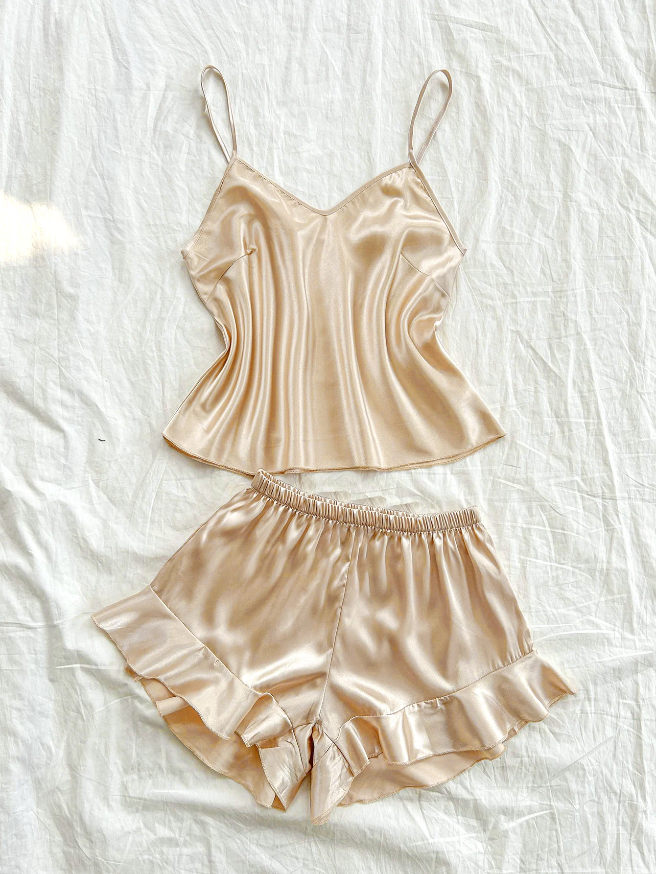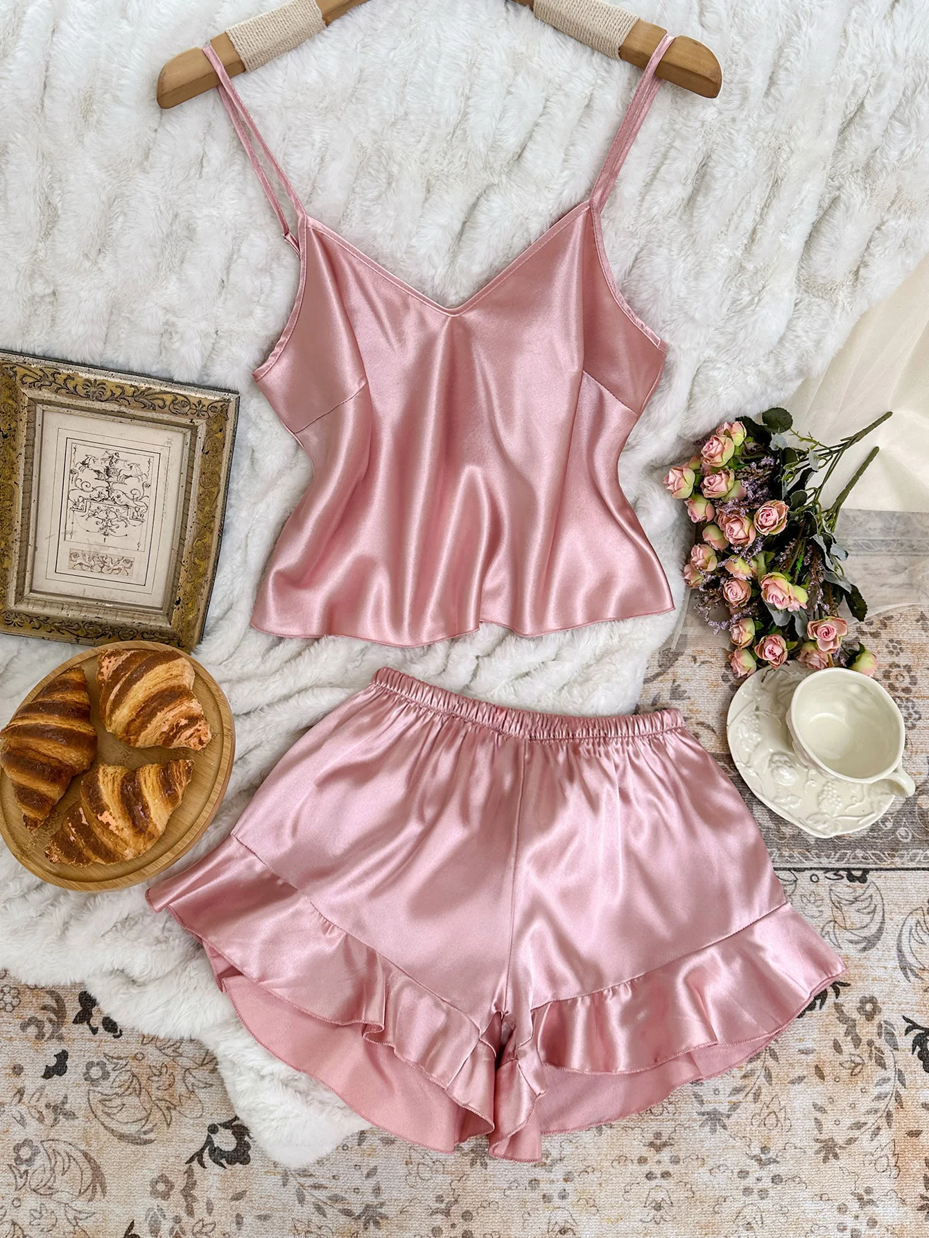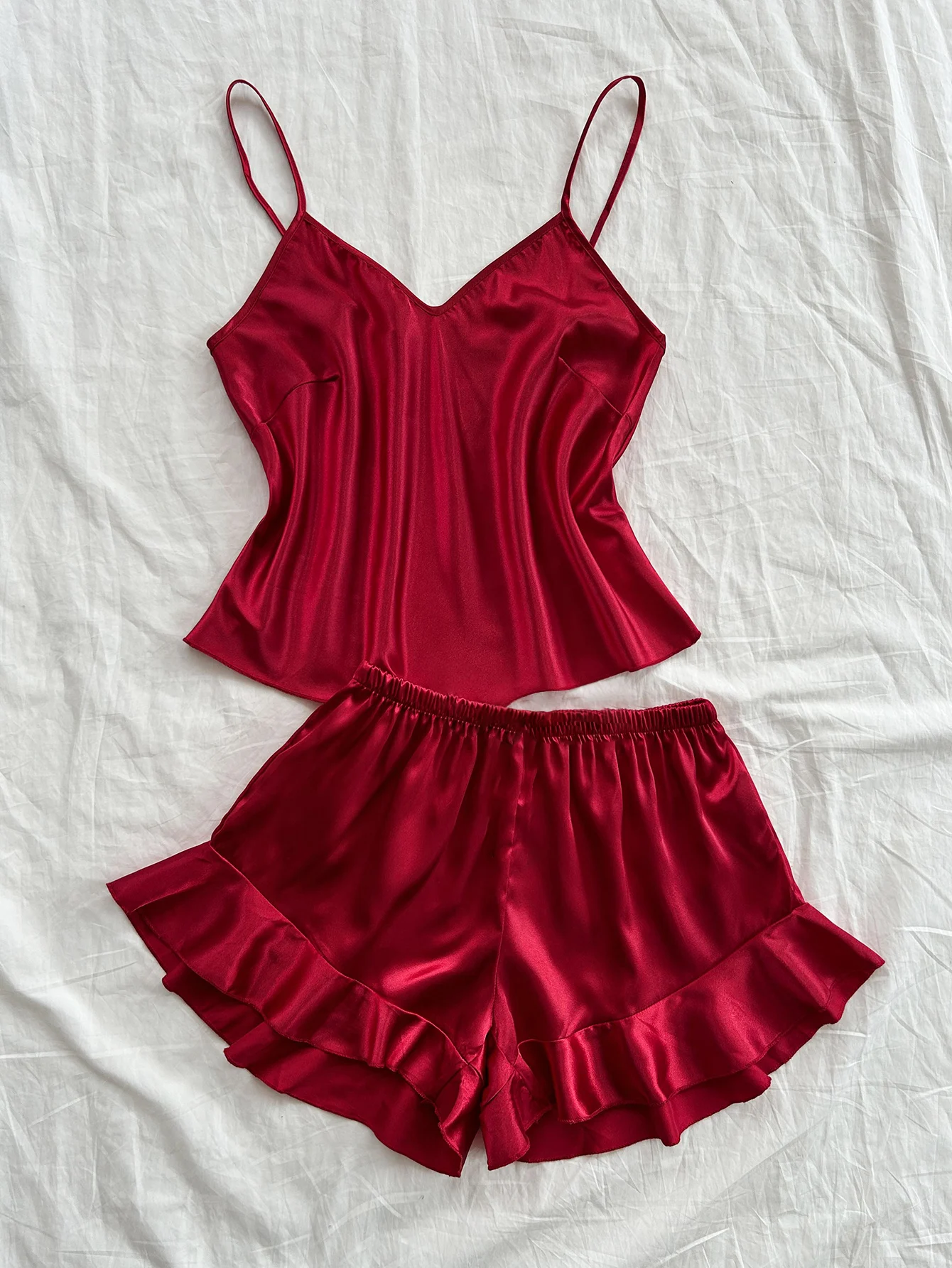 Plus Size Women's Fashion Sexy V-neck halter top with ruffled Shorts Pajama Set 2pcs