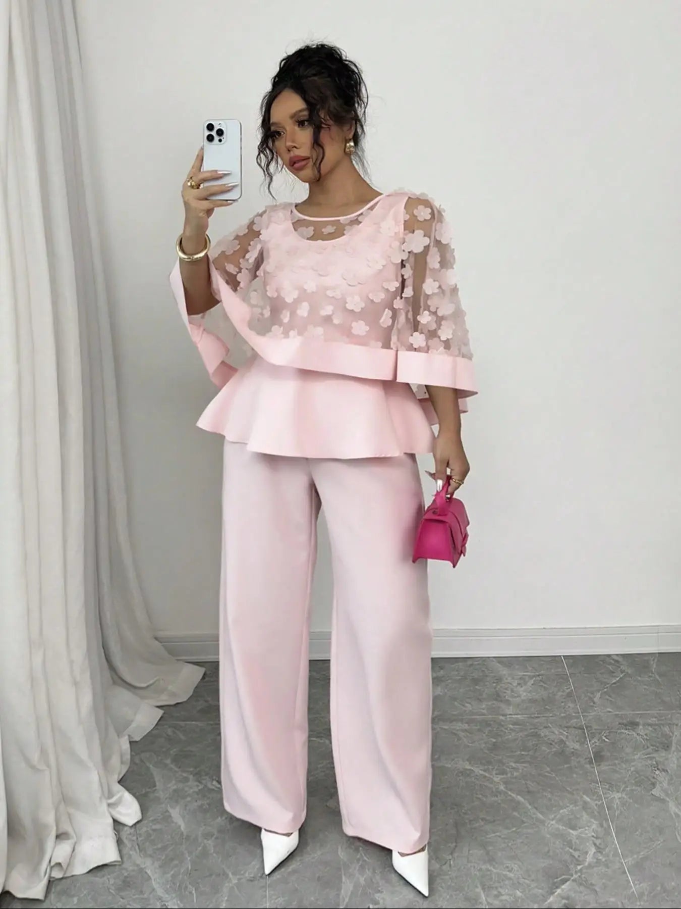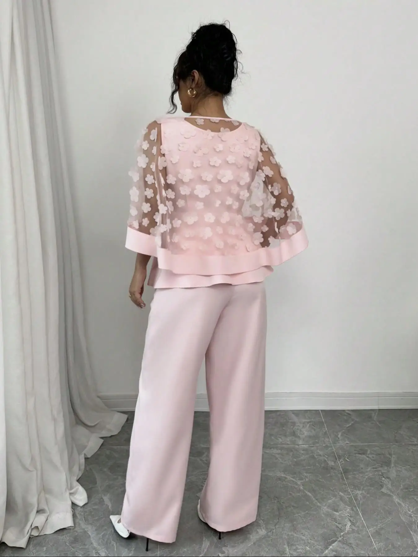 Plus Size Women's Two-Piece Set, Casual Floral and Plain Design, Moderate Thickness for All Seasons