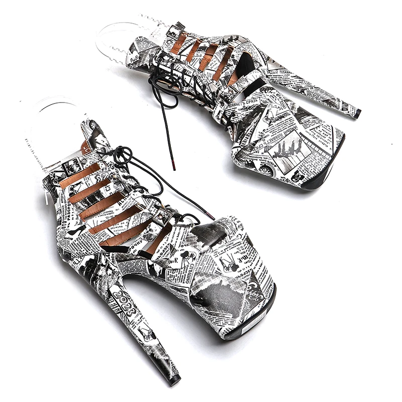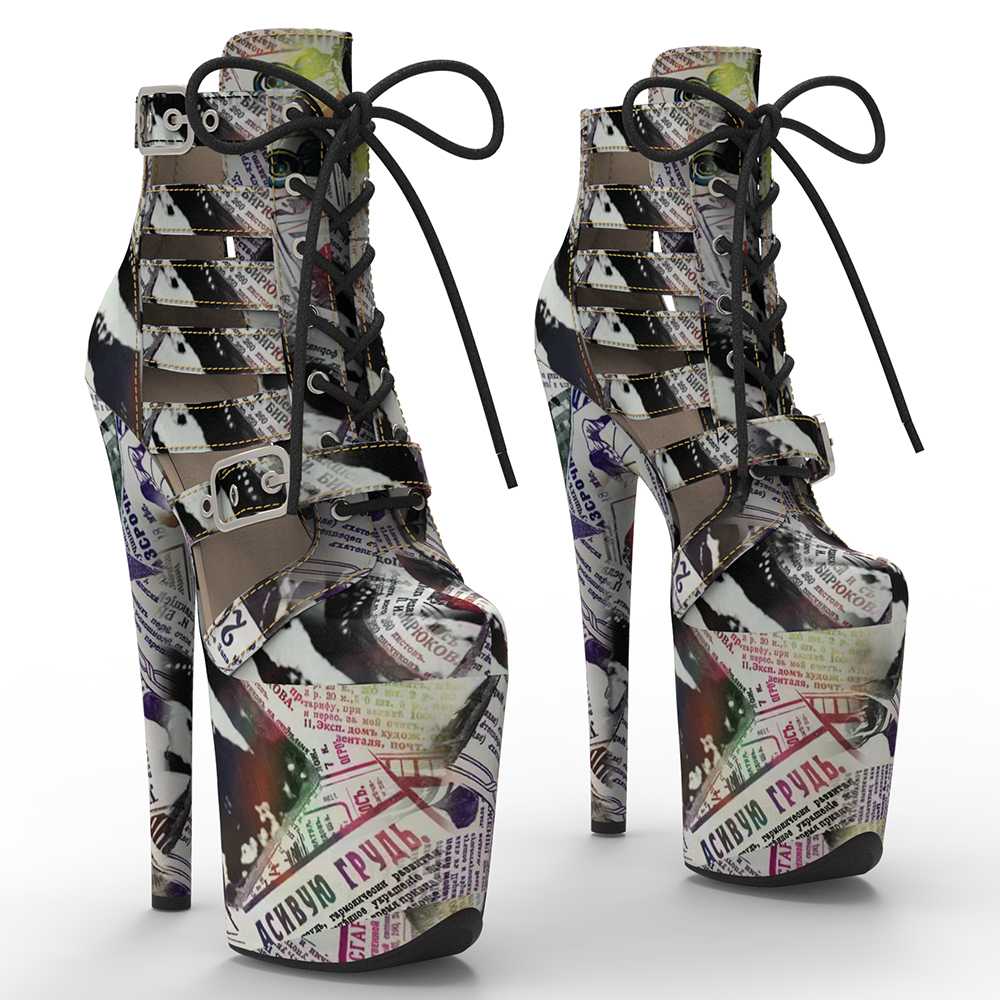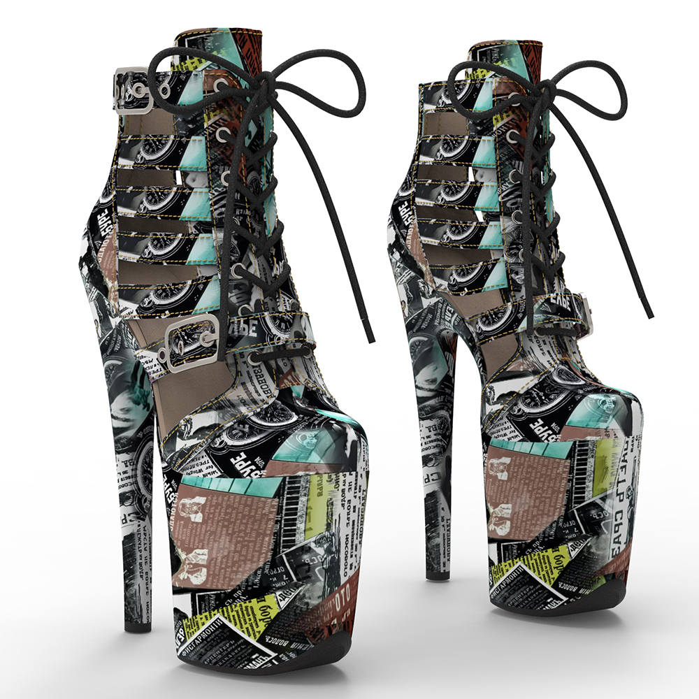 Printed High Heel Platform Boots