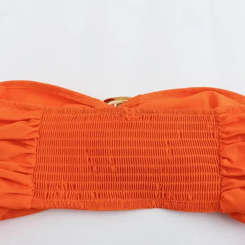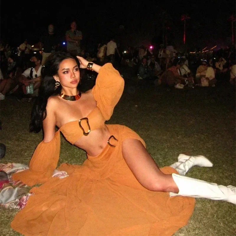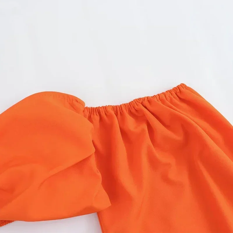 Sexy Bikini Top Skirt Set Women Long Lantern Sleeve Off Shoulder Cropped Tops Pleated Split Skirts 2025 Summer Lady Beach Outfit