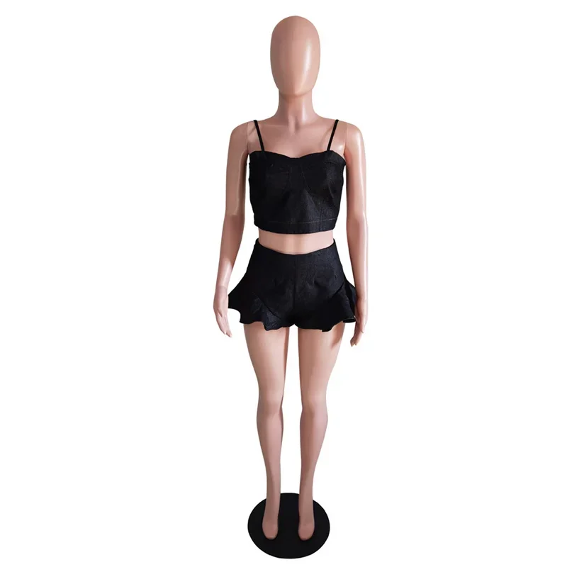 Sexy Denim 2 Piece Sets Womens Outfits Summer 2024 Crop Tops and Ruffles Shorts Sets Party Club Jeans Birthday Matching Sets