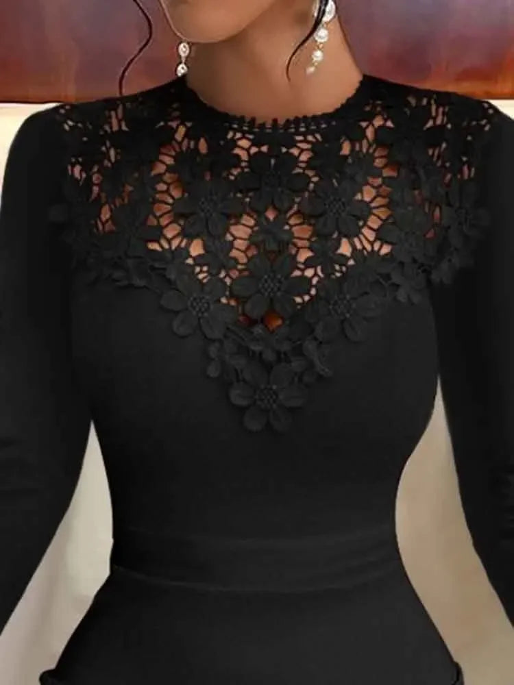 Sexy Lace Patchwork Bodycon Mini Dress Women Fashion O-neck Long Sleeve Solid Dresses Autumn Winter Hollow Out Skinny Robe Femme