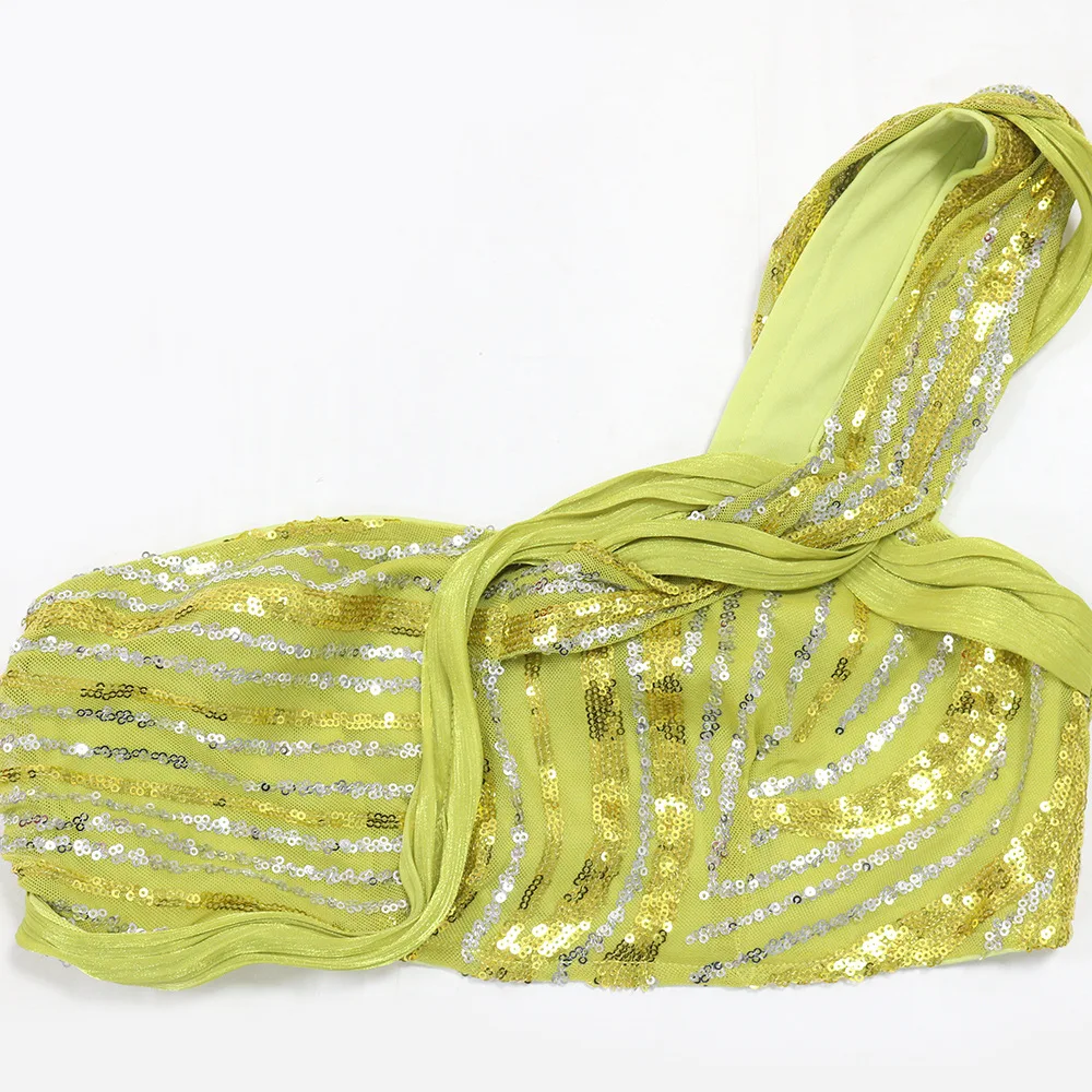 Sexy One Shoulder Sequined 2 Piece Skirt Set