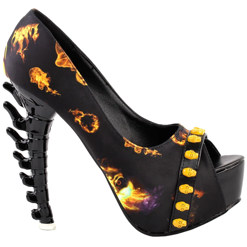 Sexy Punk Skull Peep Toe Platform Bone Heels