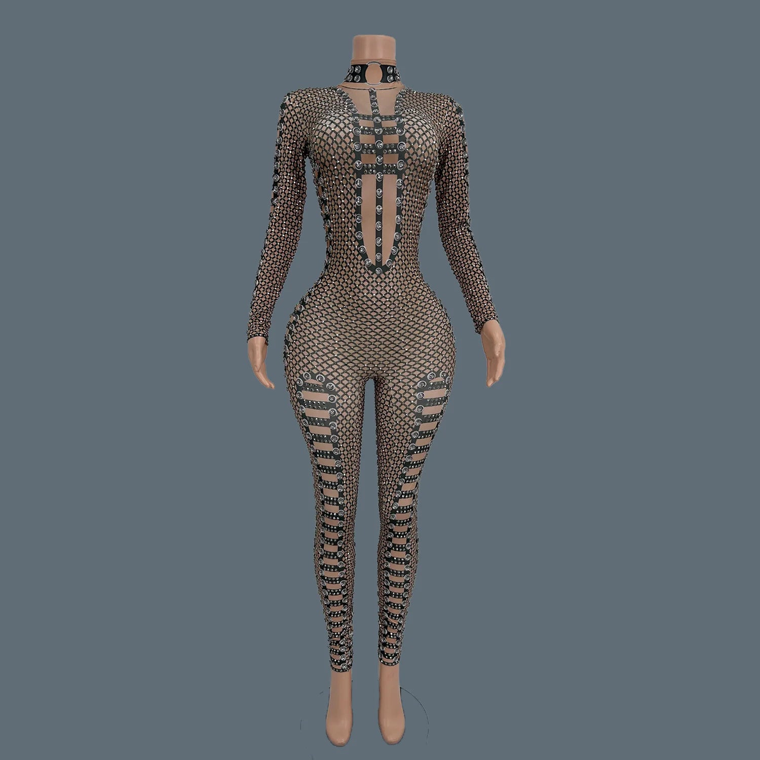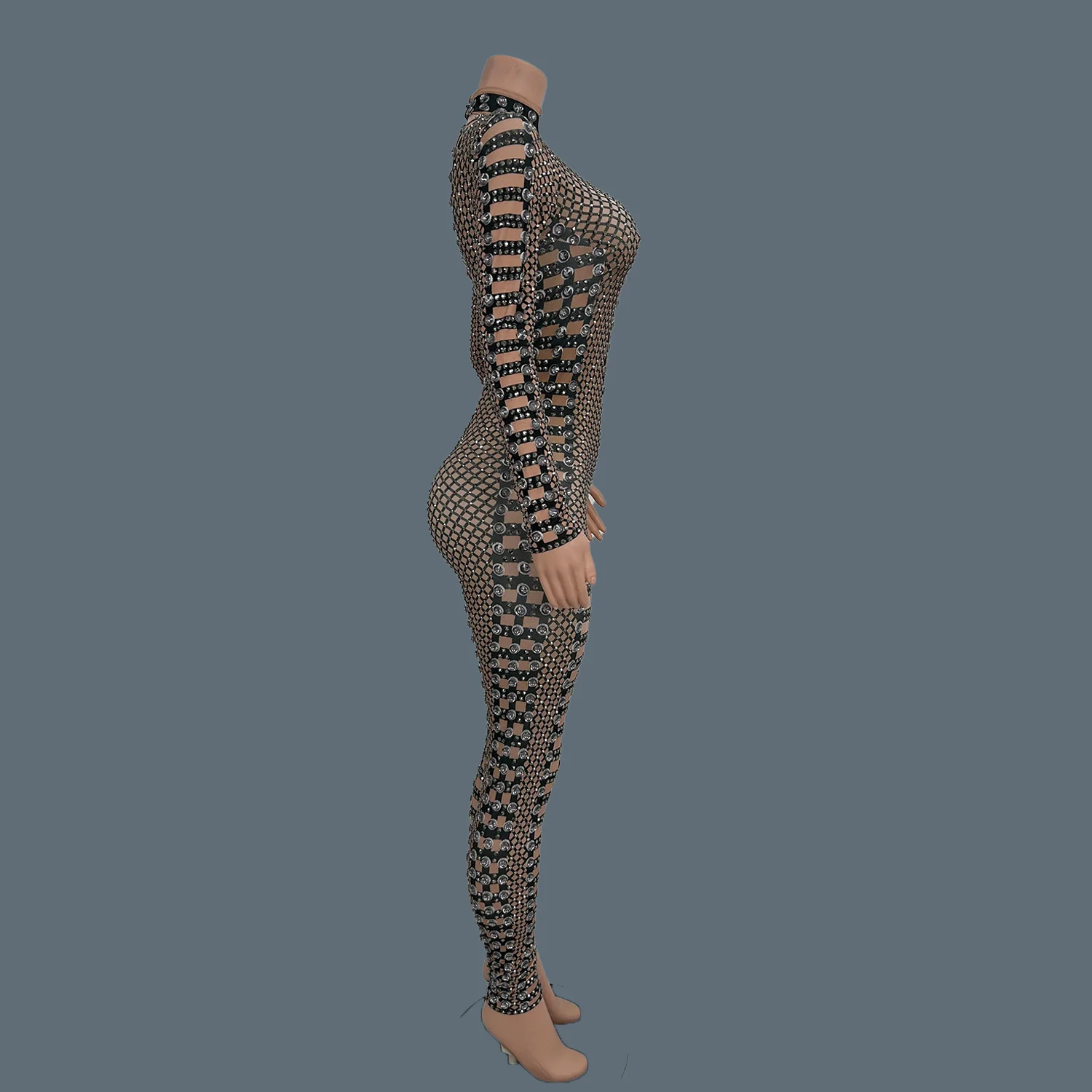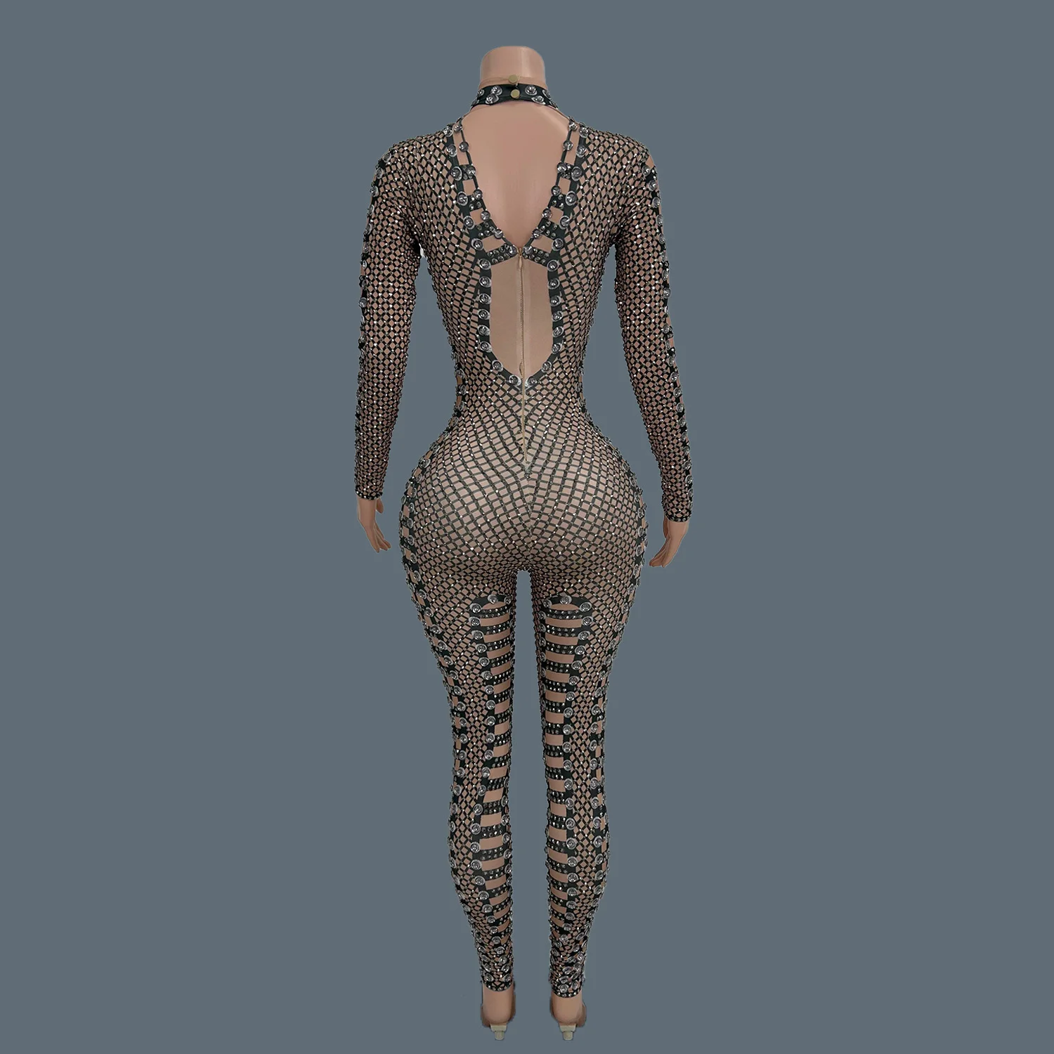 Sexy Women Bodycon Jumpsuit Plus Size Show Clothing Sparkle Crystal Performance Costumes Lady Rhinestones Bodysuits Louwang