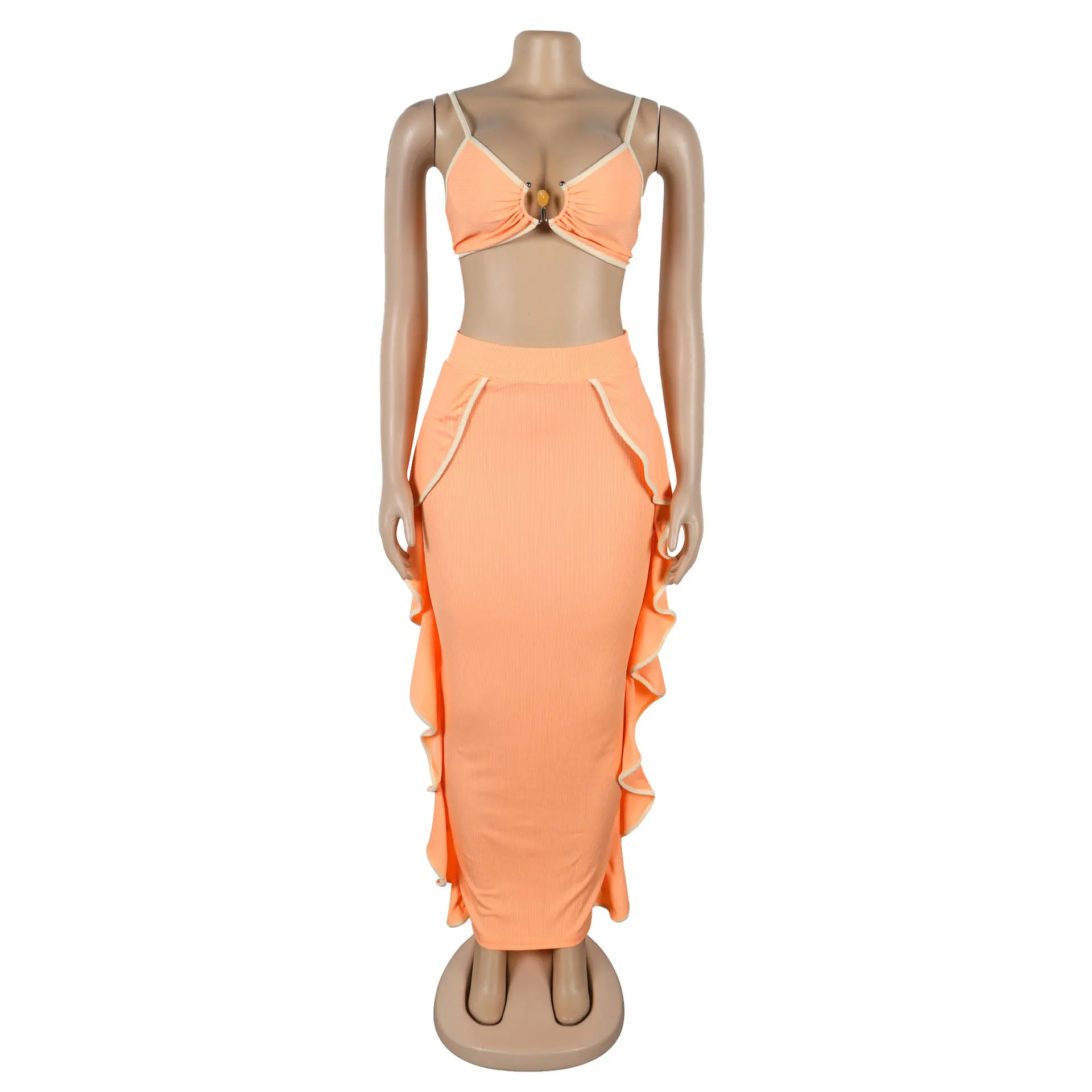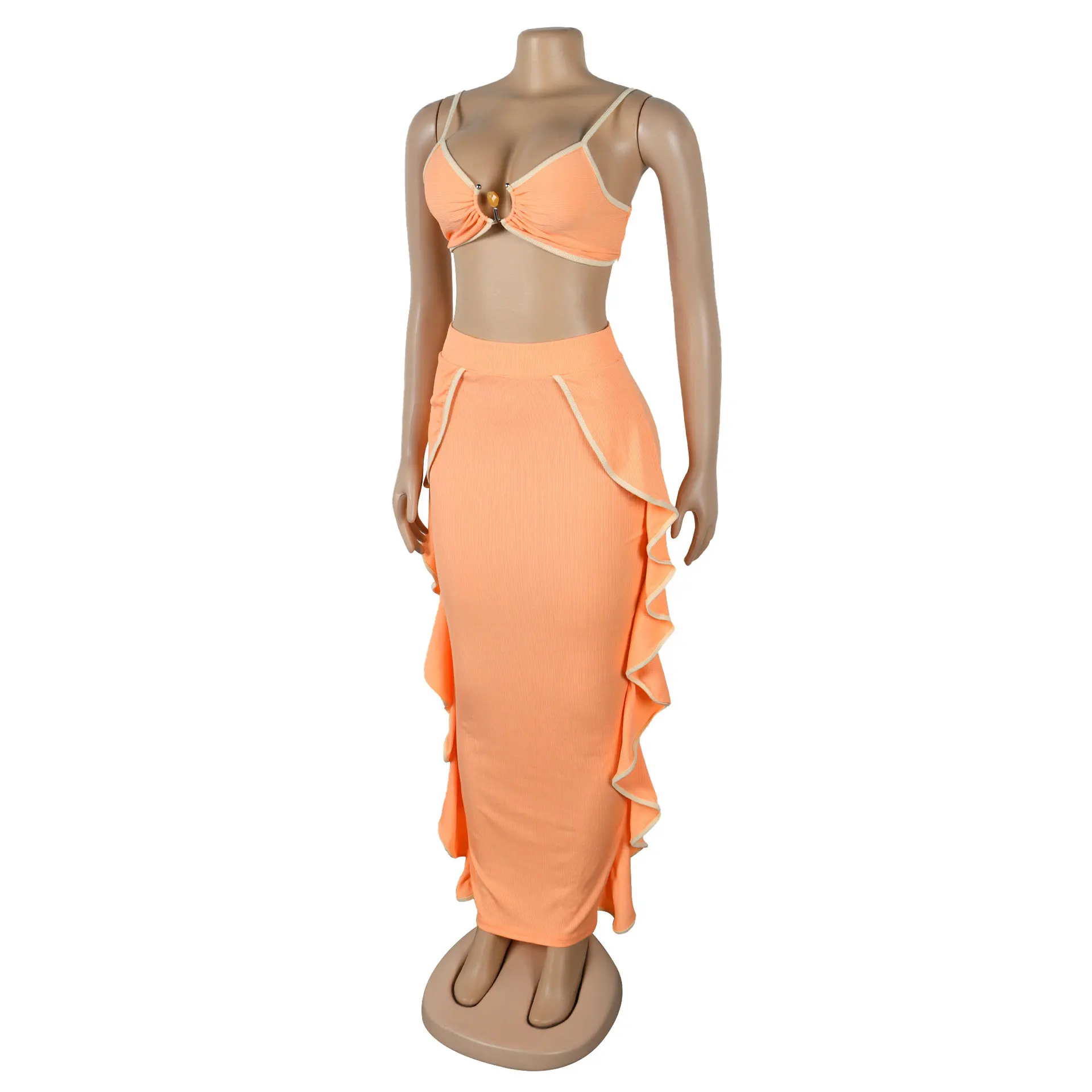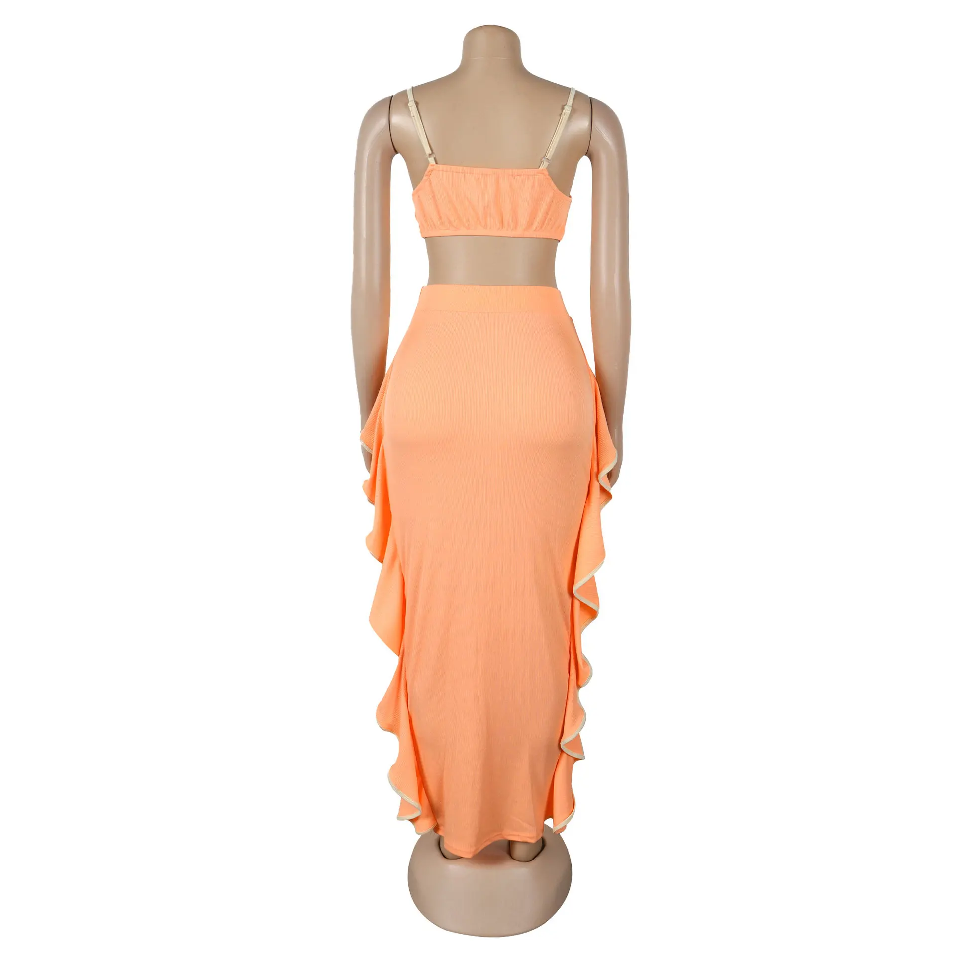 Two Piece Dress for Women 2 Piece Sets Spaghetti Strap Tops Ruffle Bodycon Maxi Skirt Suits Women 2 Piece Outfit
