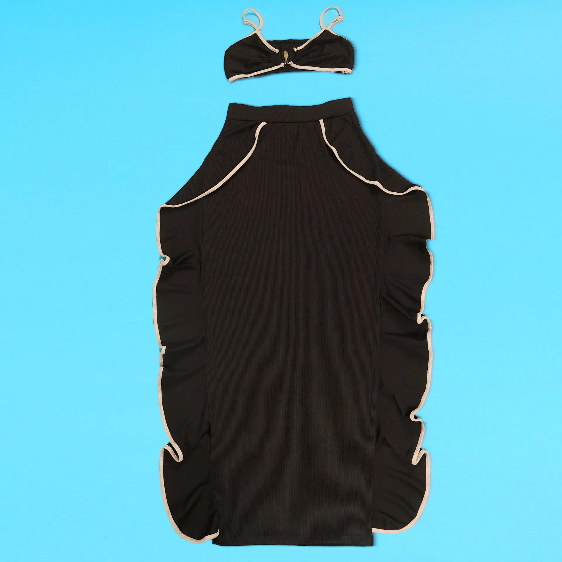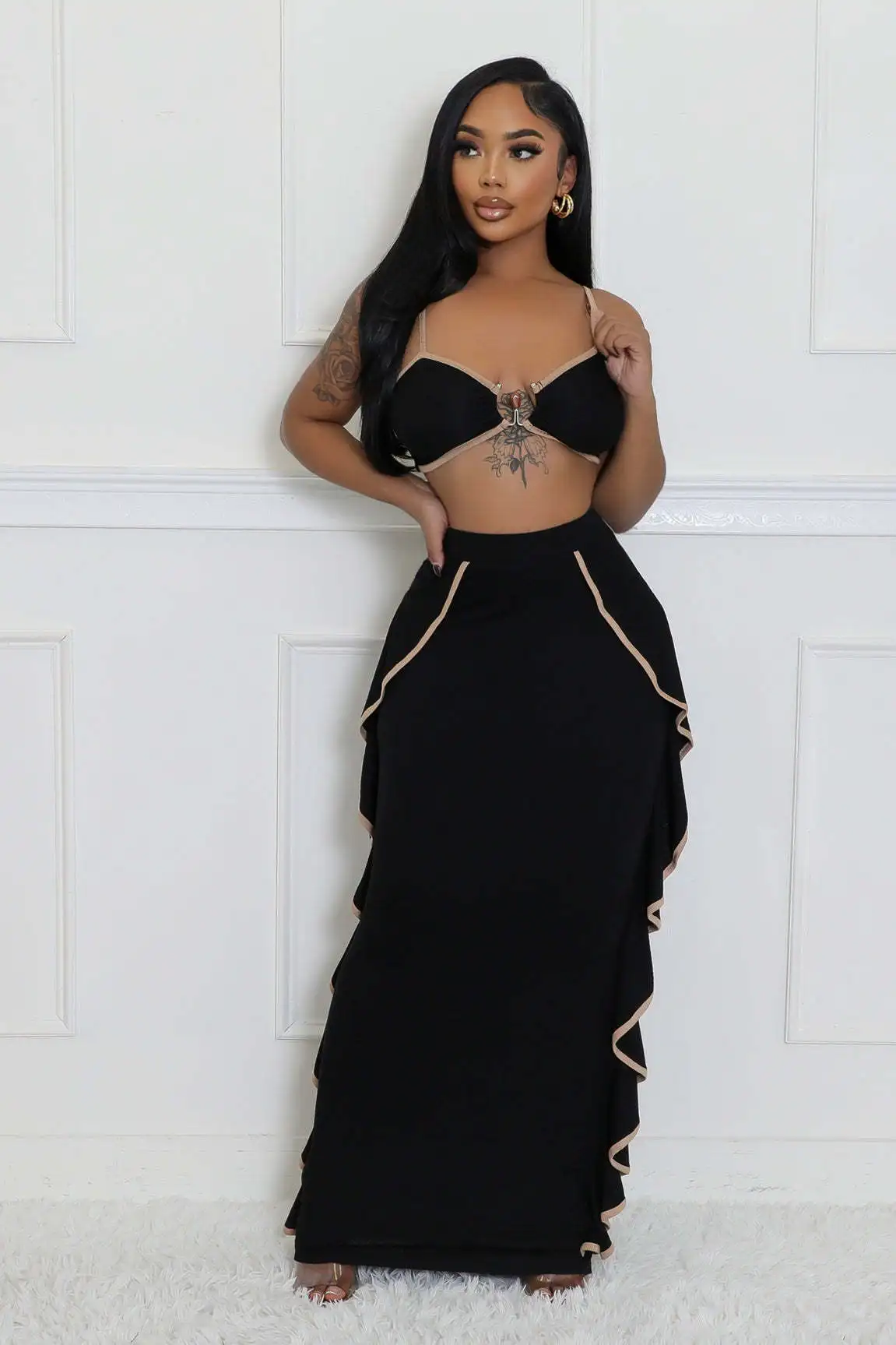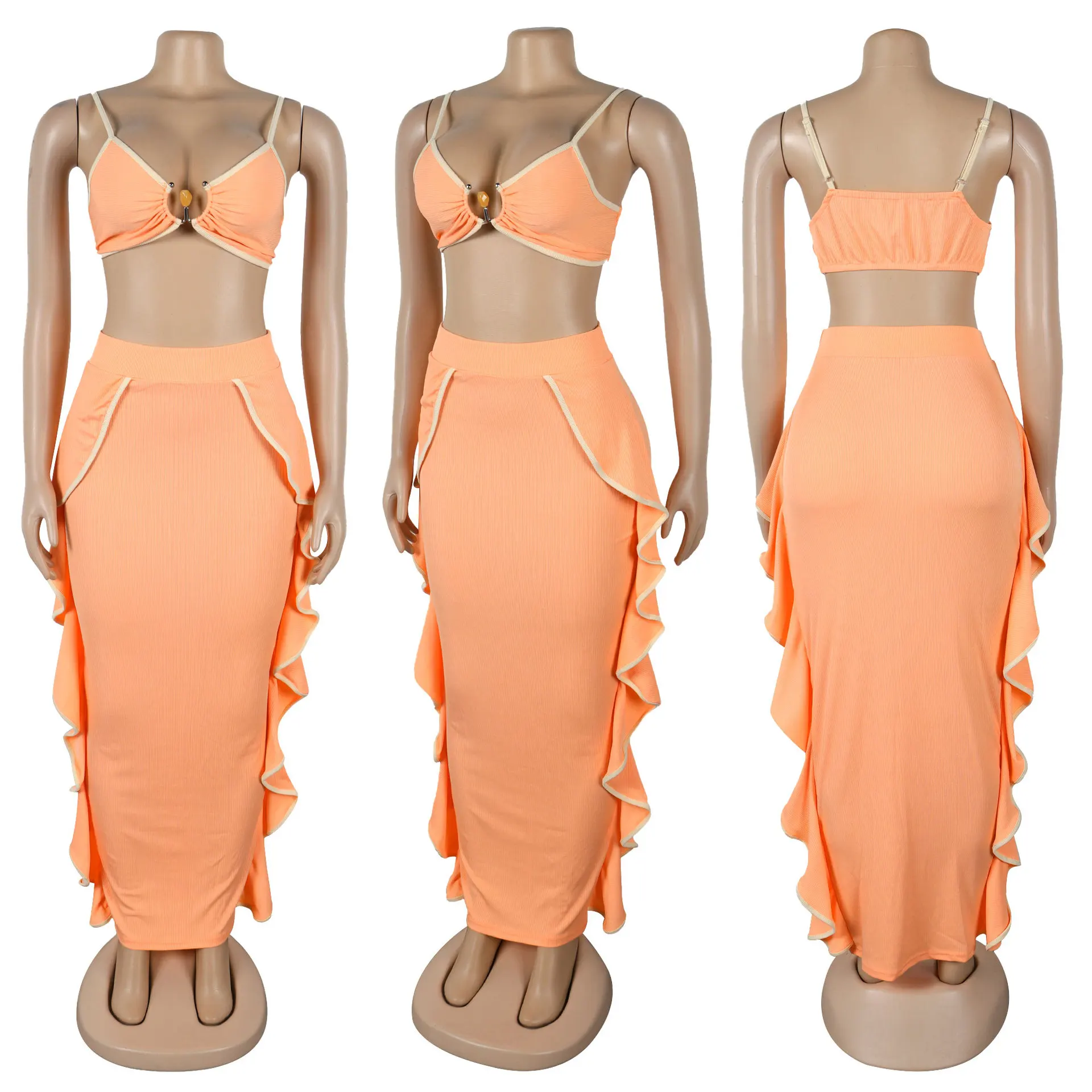 Two Piece Dress for Women 2 Piece Sets Spaghetti Strap Tops Ruffle Bodycon Maxi Skirt Suits Women 2 Piece Outfit
