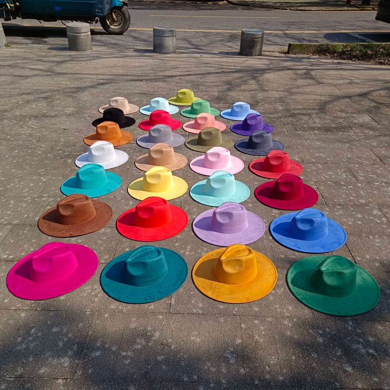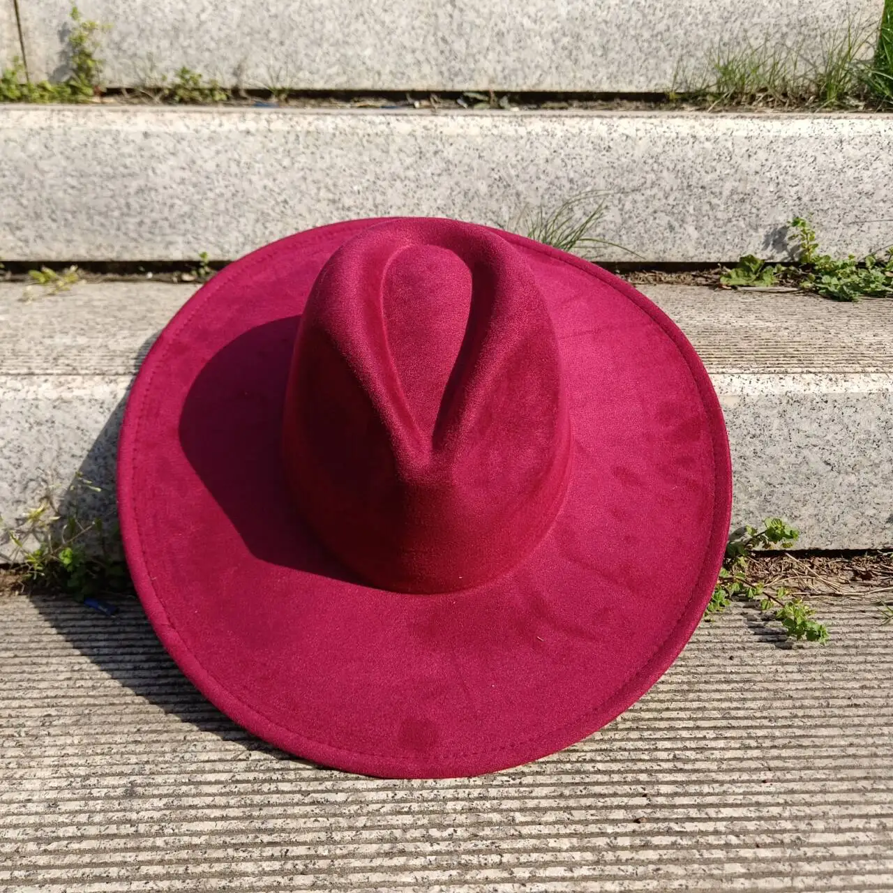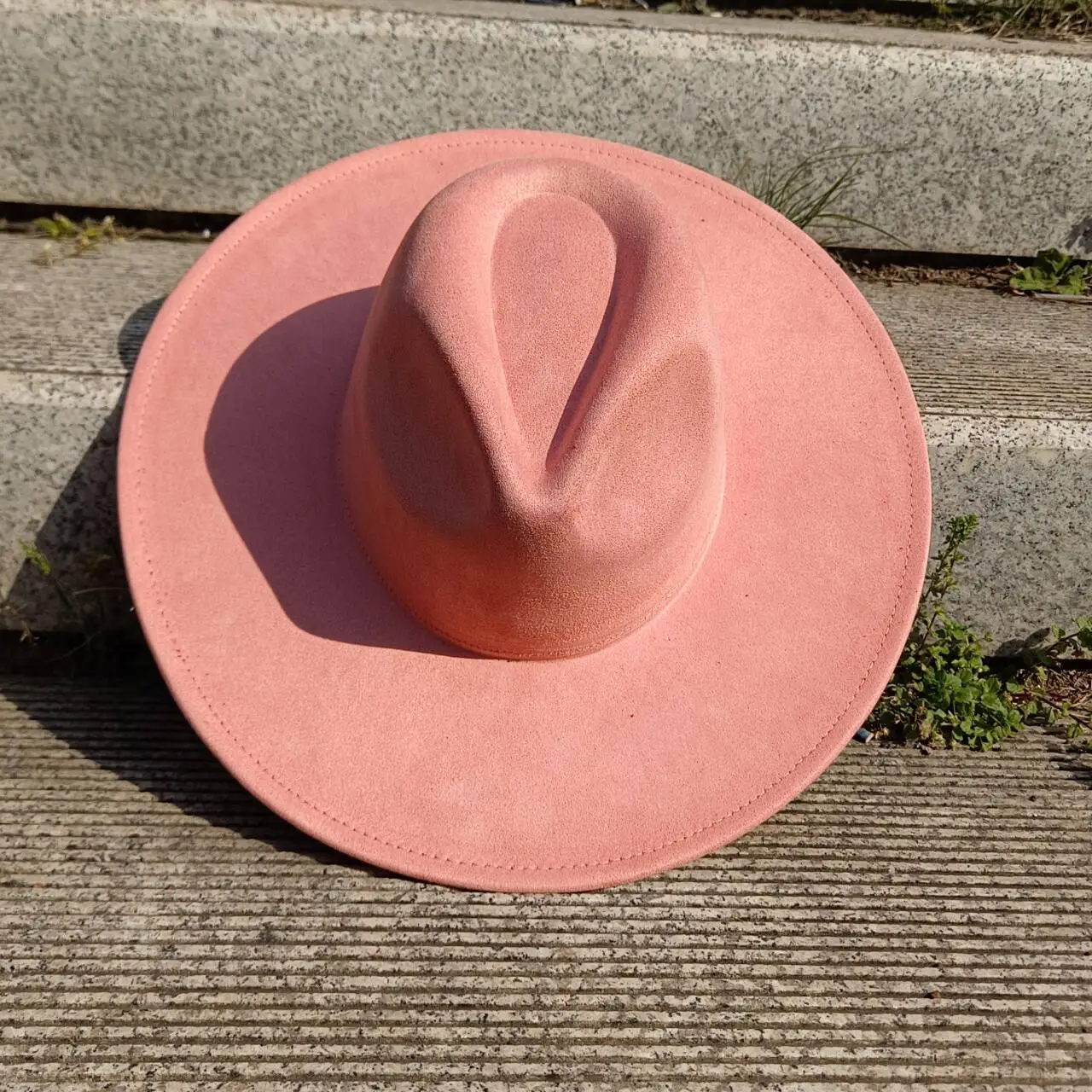 Suede Fedora Hat 9.5cm Wide Brim Suede Hats for Women and Men Hand Sewn Autumn Winter Jazz Hat Fashion chapeau femme шляпа