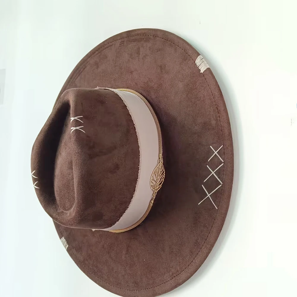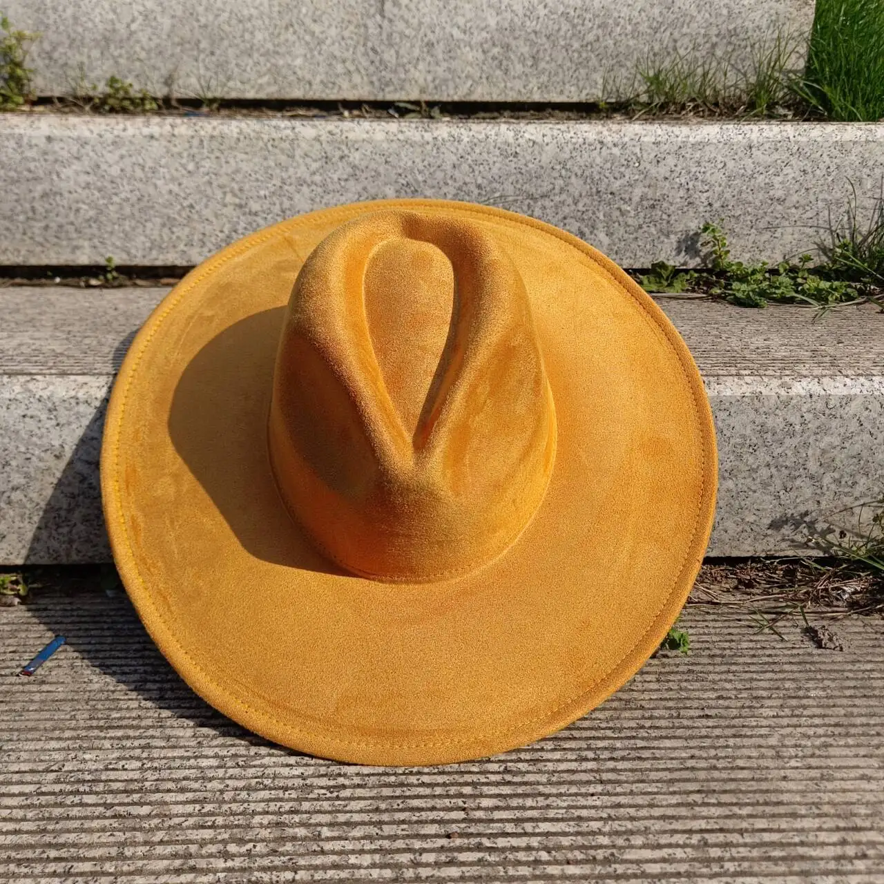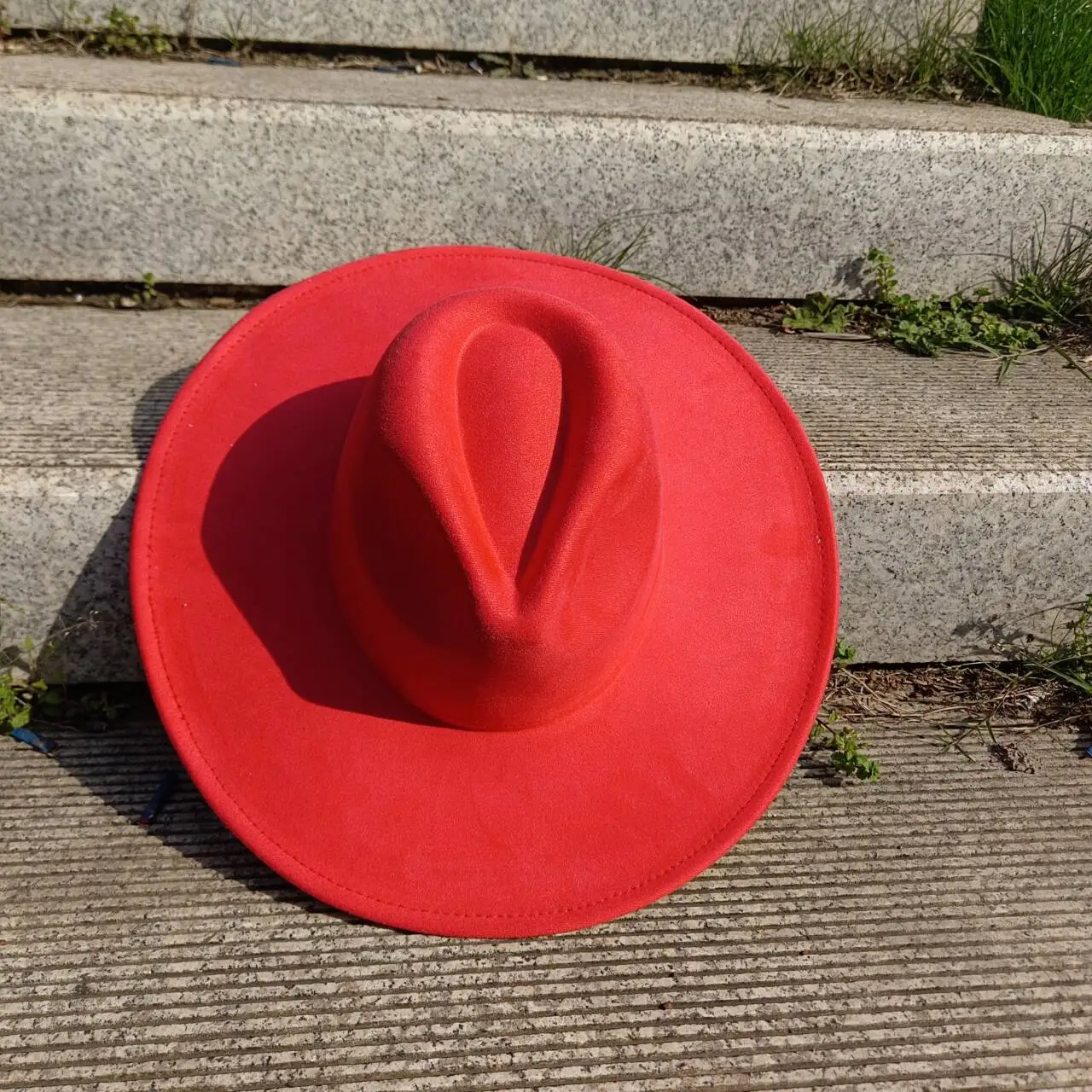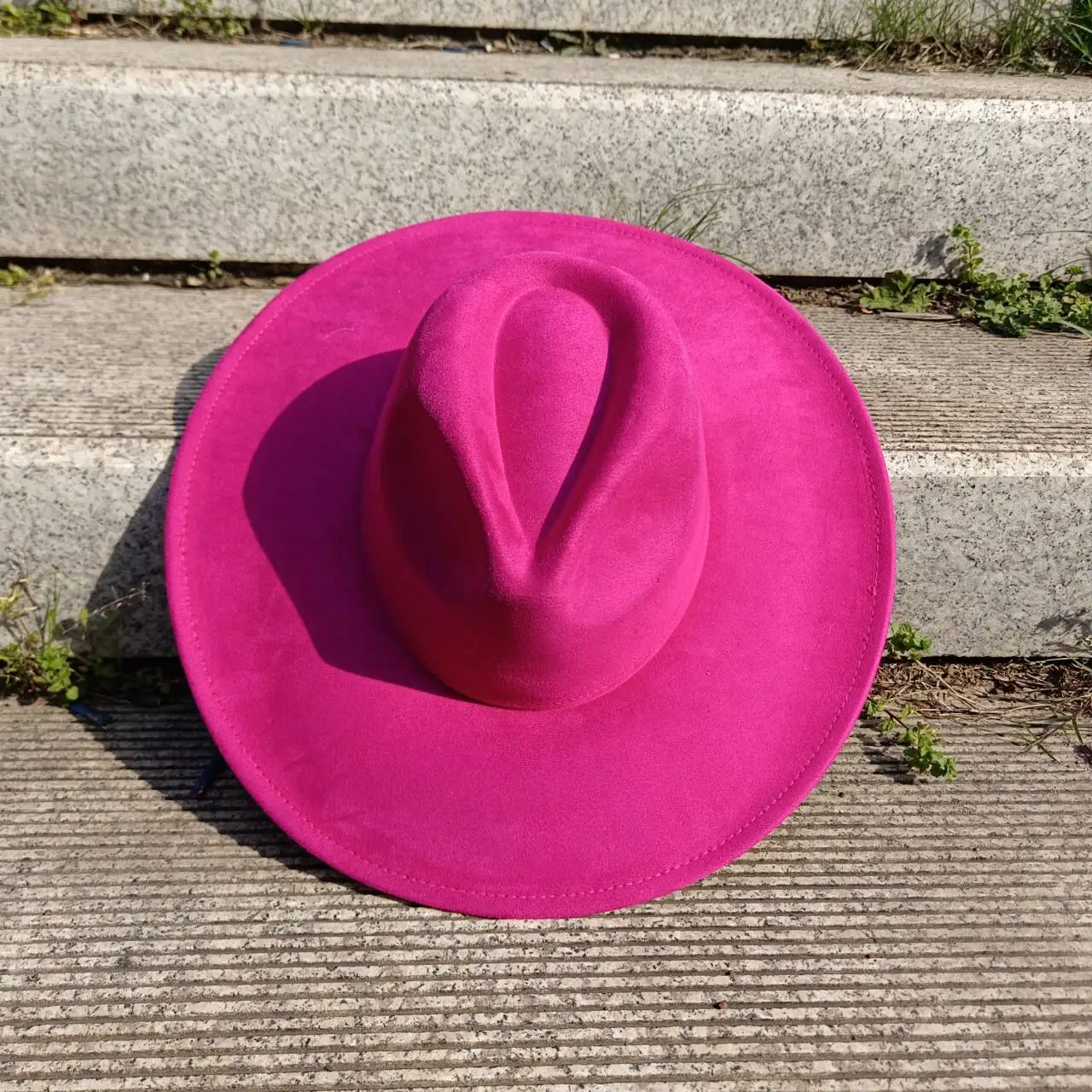 Suede Fedora Hat 9.5cm Wide Brim Suede Hats for Women and Men Hand Sewn Autumn Winter Jazz Hat Fashion chapeau femme шляпа