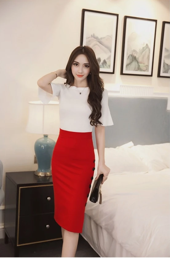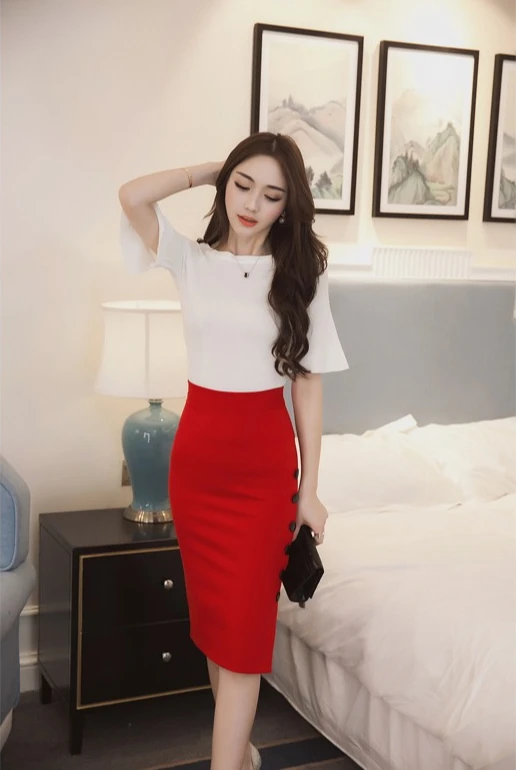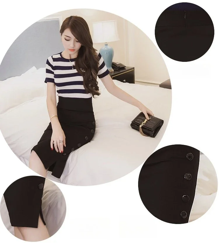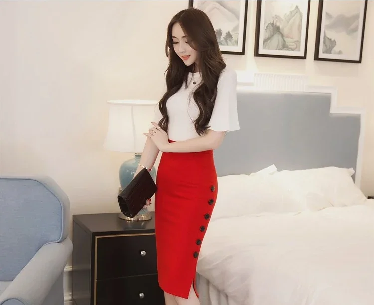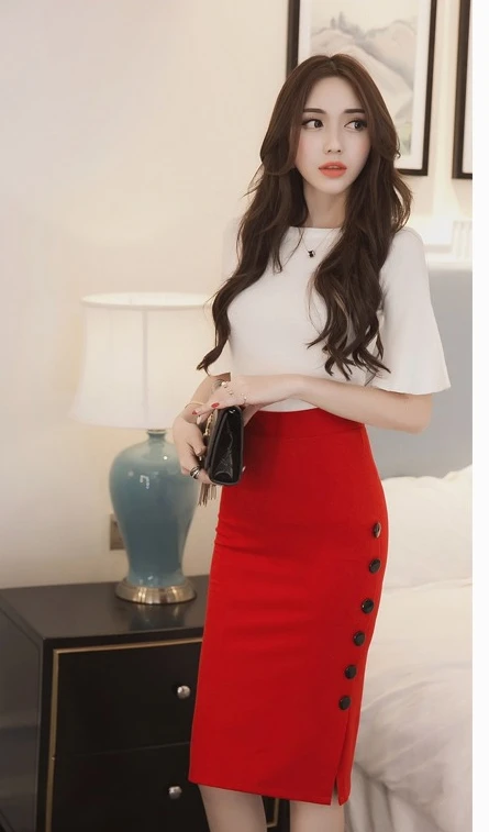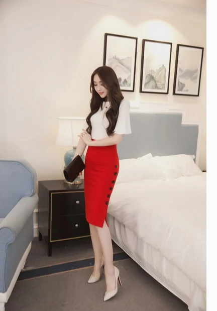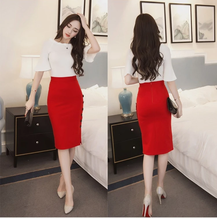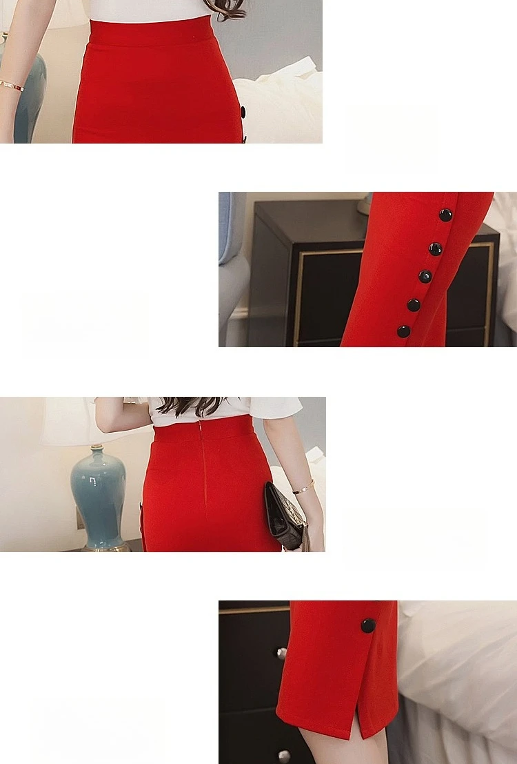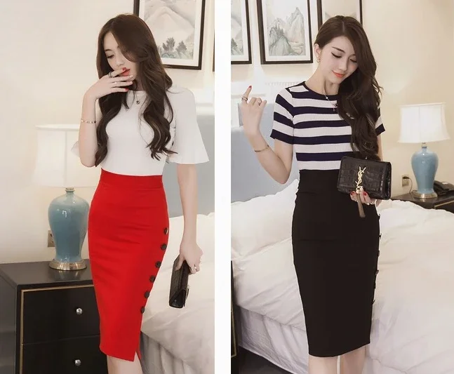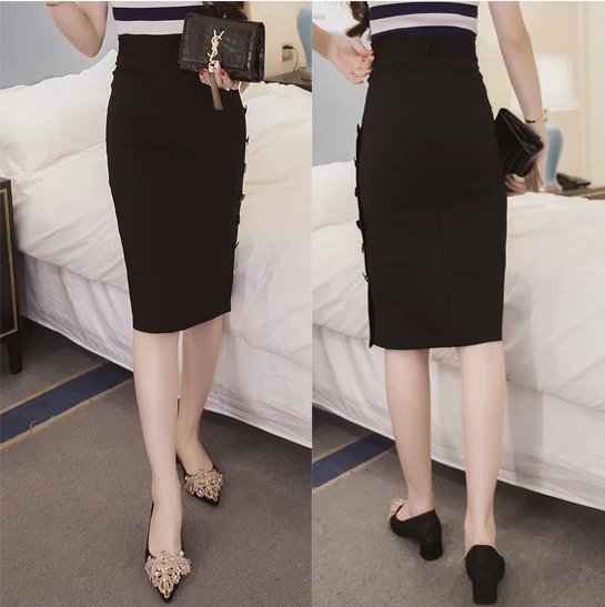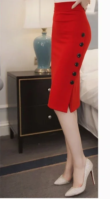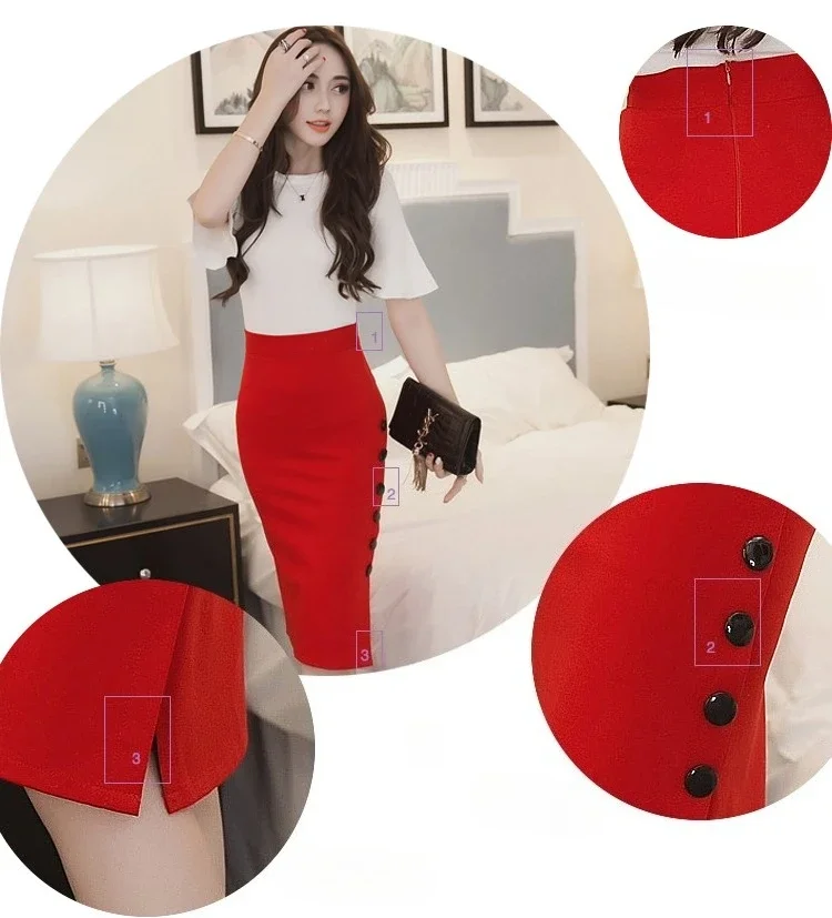 Summer Elegant Midi Skirt Women Skirt 5XL Plus Size Sexy Slit Women's Versatile Bodycon Pencil Skirt Fashion Button Streetwear