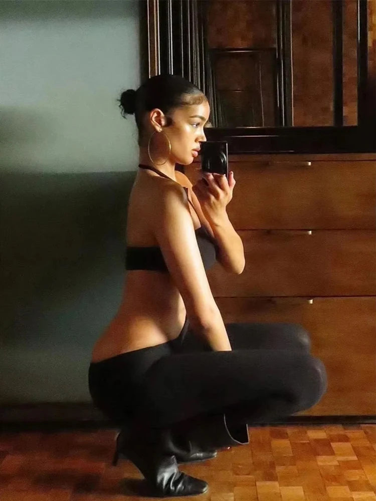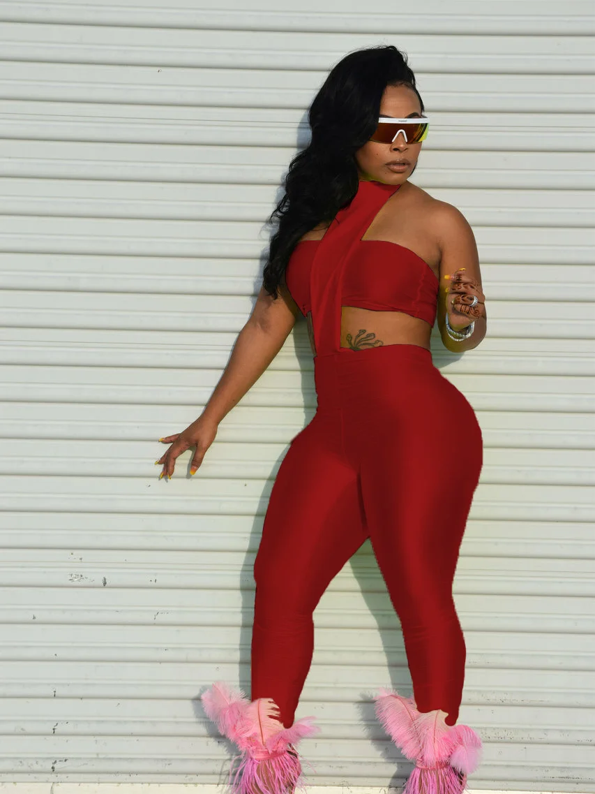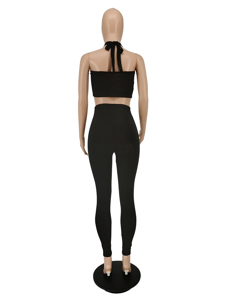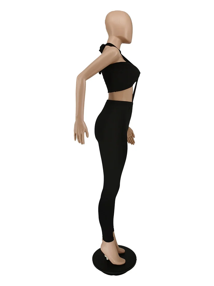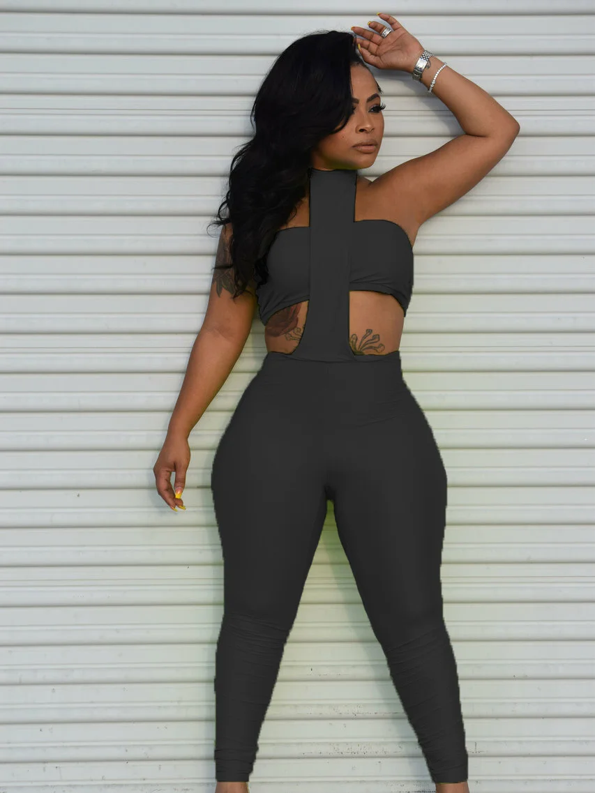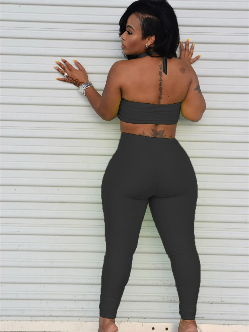 Weird Puss Sexy Backless 2 Piece Set Women Stretch Tube Top+Skinny Halter Jumpsuit Fitness Street Matching Party Club Overalls